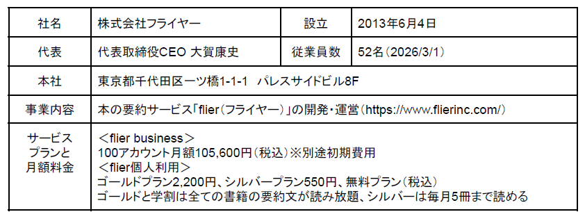 flierは、1冊10分で読める「本の要約サービス」です。ビジネス書の新刊や話題のベストセラー、名著の要約をウェブ、アプリで毎日公開。AIを使った音声版もあります。収録書籍数は4,200冊超、累計会員数は130万人を突破しました(2026年3月現在)。