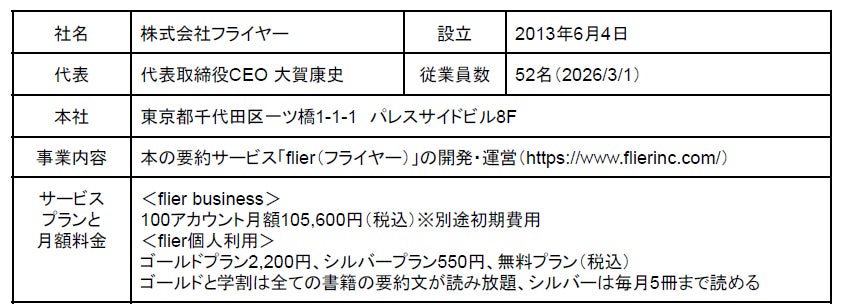 累計会員数130万人を突破した本の要約サービス「flier」を運営する株式会社フライヤー(本社:東京都千代田区、代表取締役CEO 大賀康史)は、体系立てた様々な知恵の元となる本との出合いや学びを促進し、日本中のあらゆる人に、社会に、“多様な知”を届けることに挑んでいきます。