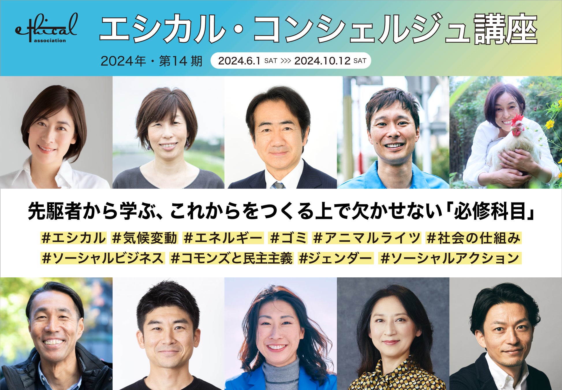「エシカルの本質について自ら考え、行動し、変化を起こす人々を育む」ことを目的としているエシカル協会では、より多くの方々にエシカルについて学び、考える機会を提供するために、第14期「エシカル・コンシェルジュ講座」を2024年6月から開講します。
