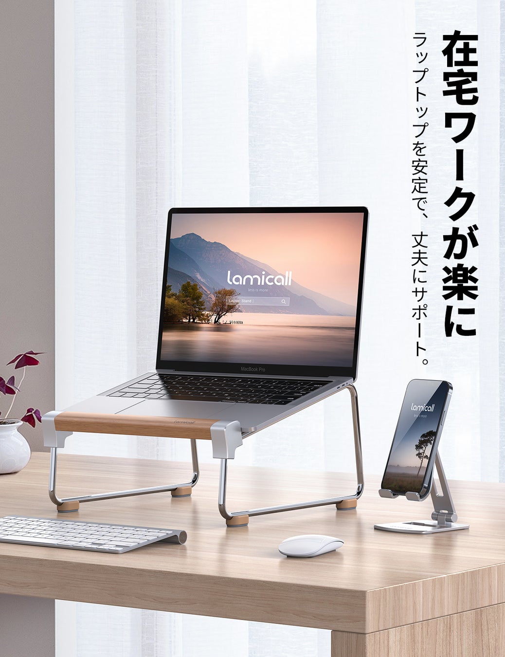 Lamicallのラップトップスタンドは、人間工学に基づいた、ノートパソコンを15cm引き上げる設計。作業時に目線を上げることで、良い姿勢を保ちデスクワーク時の首や肩への負担を軽減し、頚椎を保護しながら効率的な作業ができます。自宅や職場、カフェなど場所を問わずパフォーマンスを最大限発揮したい方におすすめです。