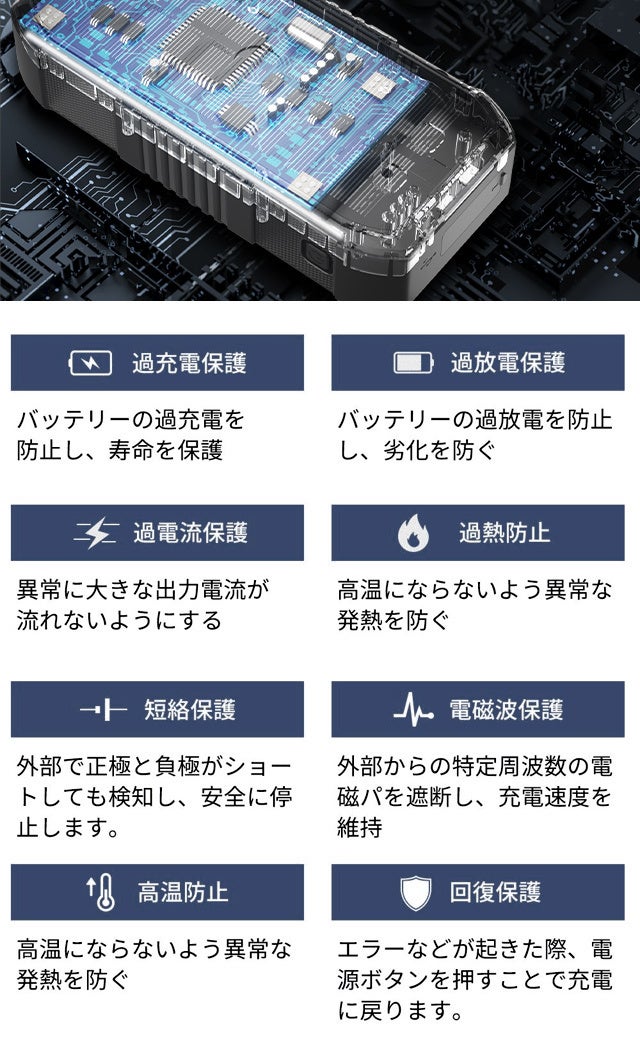安全保護システムのチップが搭載、安心してお使いいただくことができます。