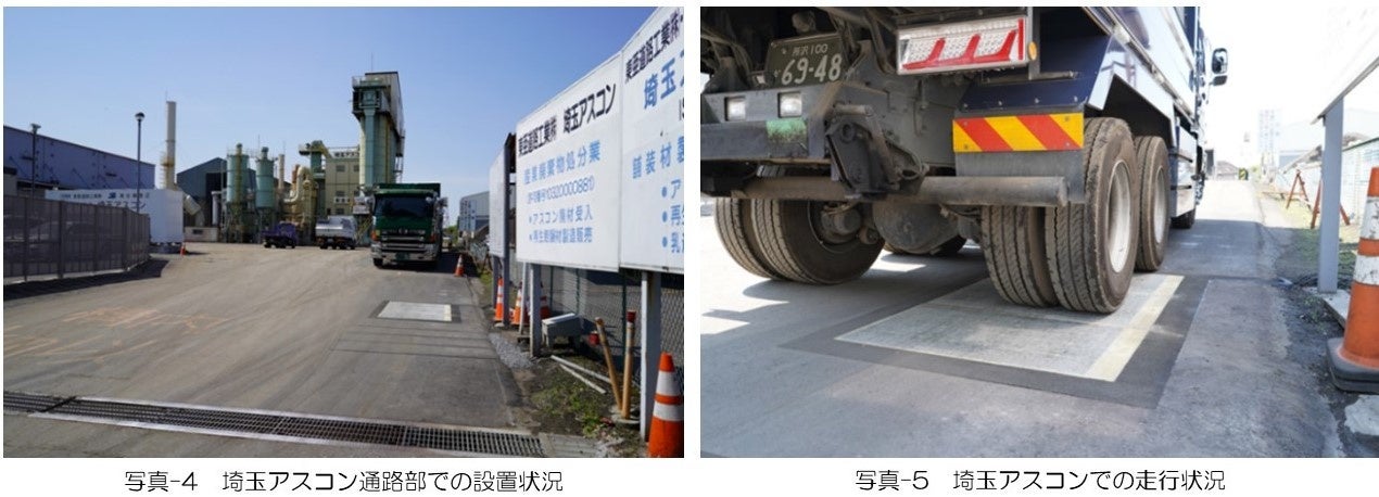 2022年5月に当社のアスファルト混合物製造工場(埼玉アスコン、埼玉県川越市)構内にWattwayを設置し耐久性を確認しています。これまでに、累計1万台程度のダンプトラックが走行しましたが,損傷することなく健全な状態を維持しています。