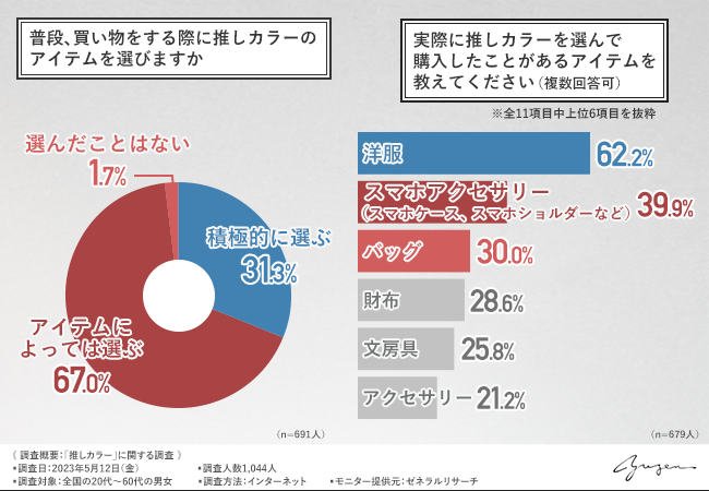 そこで今回、yuzen STRAP(https://yuzen-strap.com/)を運営しているユゼン合同会社(https://yuzen-official.com/)は、全国の20代~60代の男女を対象に、「推しカラー」に関する調査を実施しました。