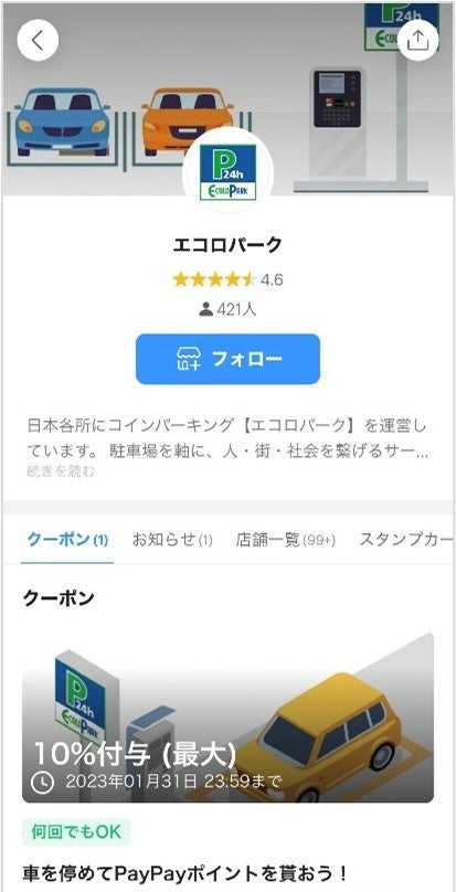 駐車場・コインパーキングの運営、管理を行っているエコロシティ株式会社(本社:東京都港区、代表取締役社長:井上 勝、以下「エコロシティ」)は、2022年12月5日(月)から2023年1月31日(火)まで、エコロシティが運営する駐車場「エコロパーク」の一部拠点にて使用できるお得なPayPayクーポンを配布する『エコロシティで使えるお得なPayPayクーポンキャンペーン』を実施いたします。PayPayクーポンは、ソフトバンクグループ株式会社とソフトバンク株式会社、ならびにヤフー株式会社の3社が共同出資するPayPay株式会社(本社:東京都港区、代表取締役社長執行役員CEO:中山 一郎、以下「PayPay」)より発行されています。