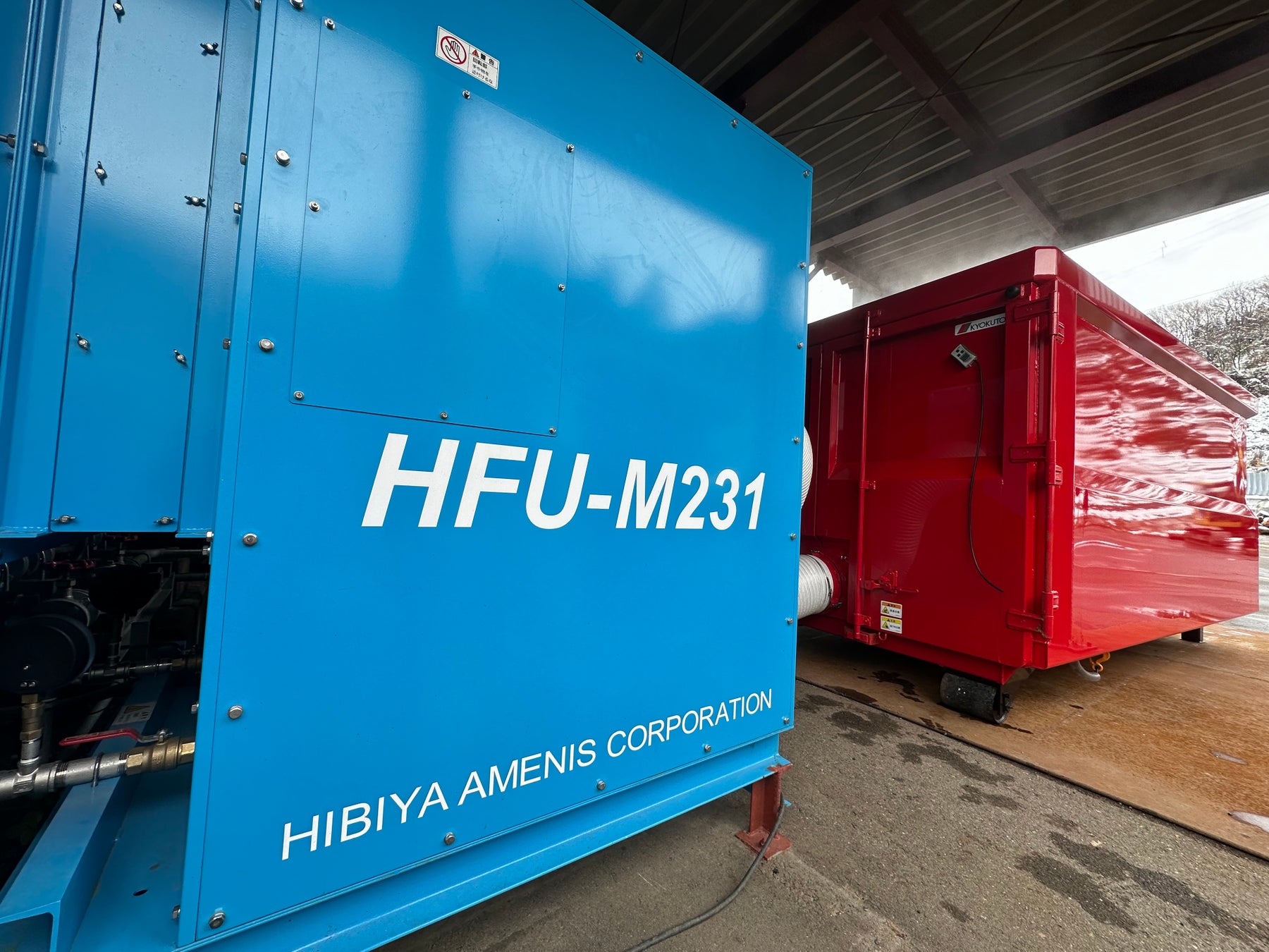 株式会社日比谷アメニス(本社:東京都港区、代表取締役:伊藤幸男)は温風ファンユニット「HFU」を開発し、木質チップ乾燥コンテナ「Kantainer®(カンテナ)」(極東開発工業株式会社、本社:大阪市中央区、代表取締役:布原達也)と組み合わせ、省スペースで確実な乾燥が可能なシステムを、株式会社安田クリーン産業(新潟県阿賀野市、代表取締役:小柳秀樹)に納品いたしました。本システムにより、焼却施設や工場から生じる温水の排熱を木質チップの乾燥に有効活用することが可能となります。