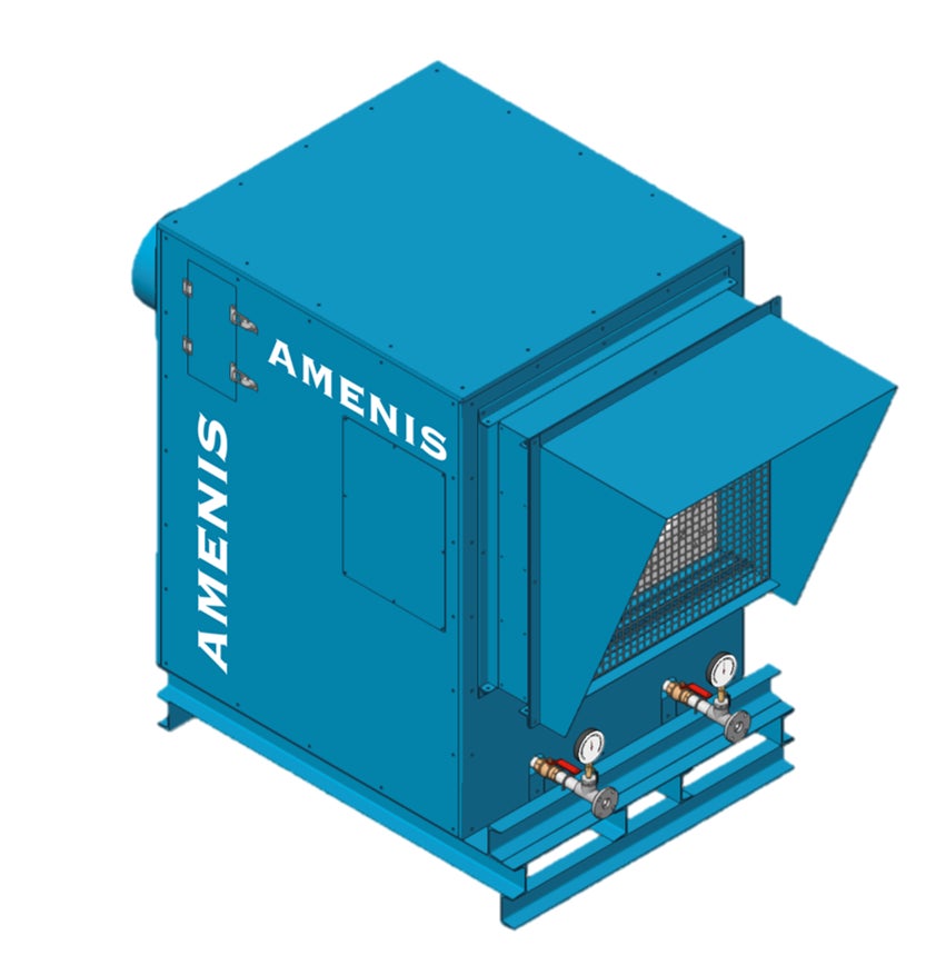 ・ 温水が熱源の場合に熱交換により温風を作り出す。