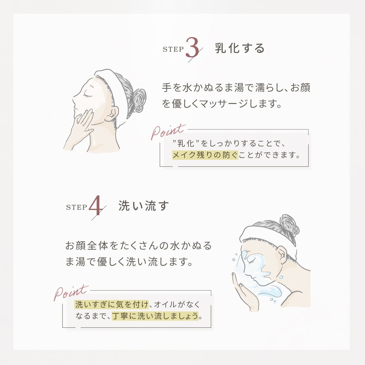 - 正しいクレンジングでお肌へのダメージを軽減