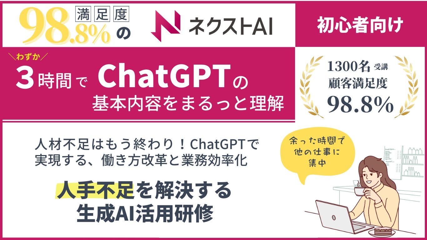 顧客満足度98.8%のChatGPT研修サービス「ネクストAI」が特別価格で受講可能
