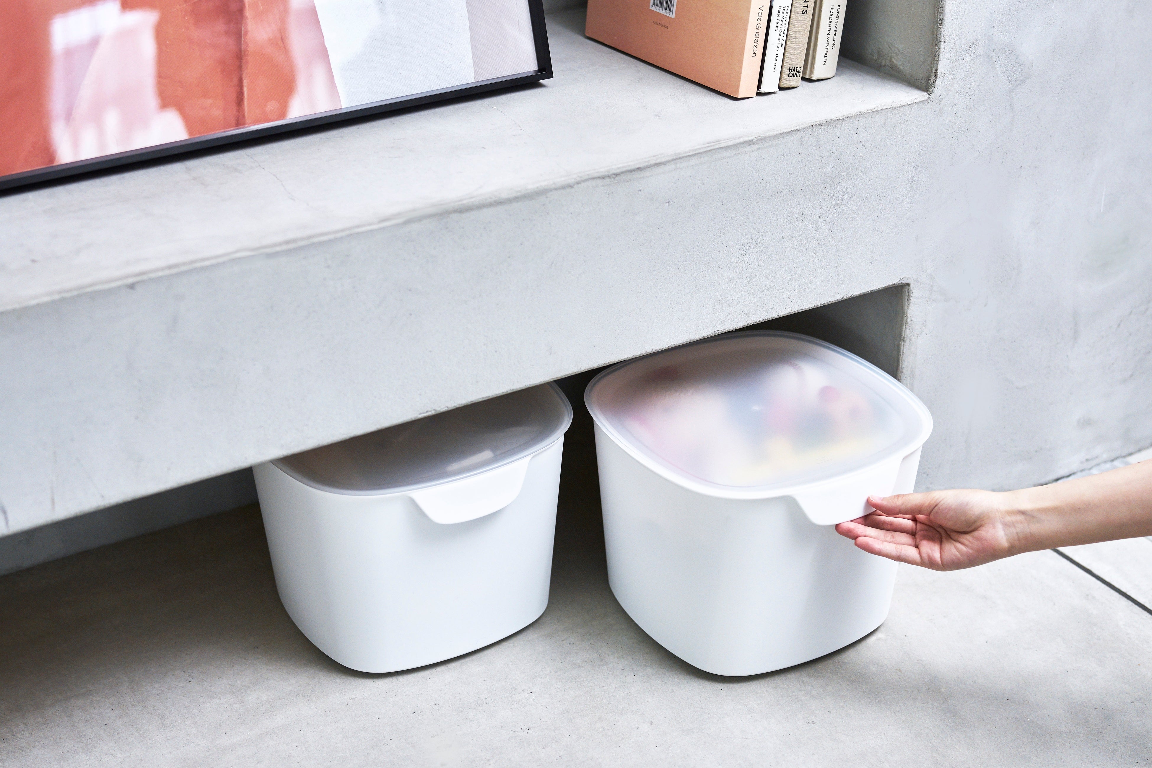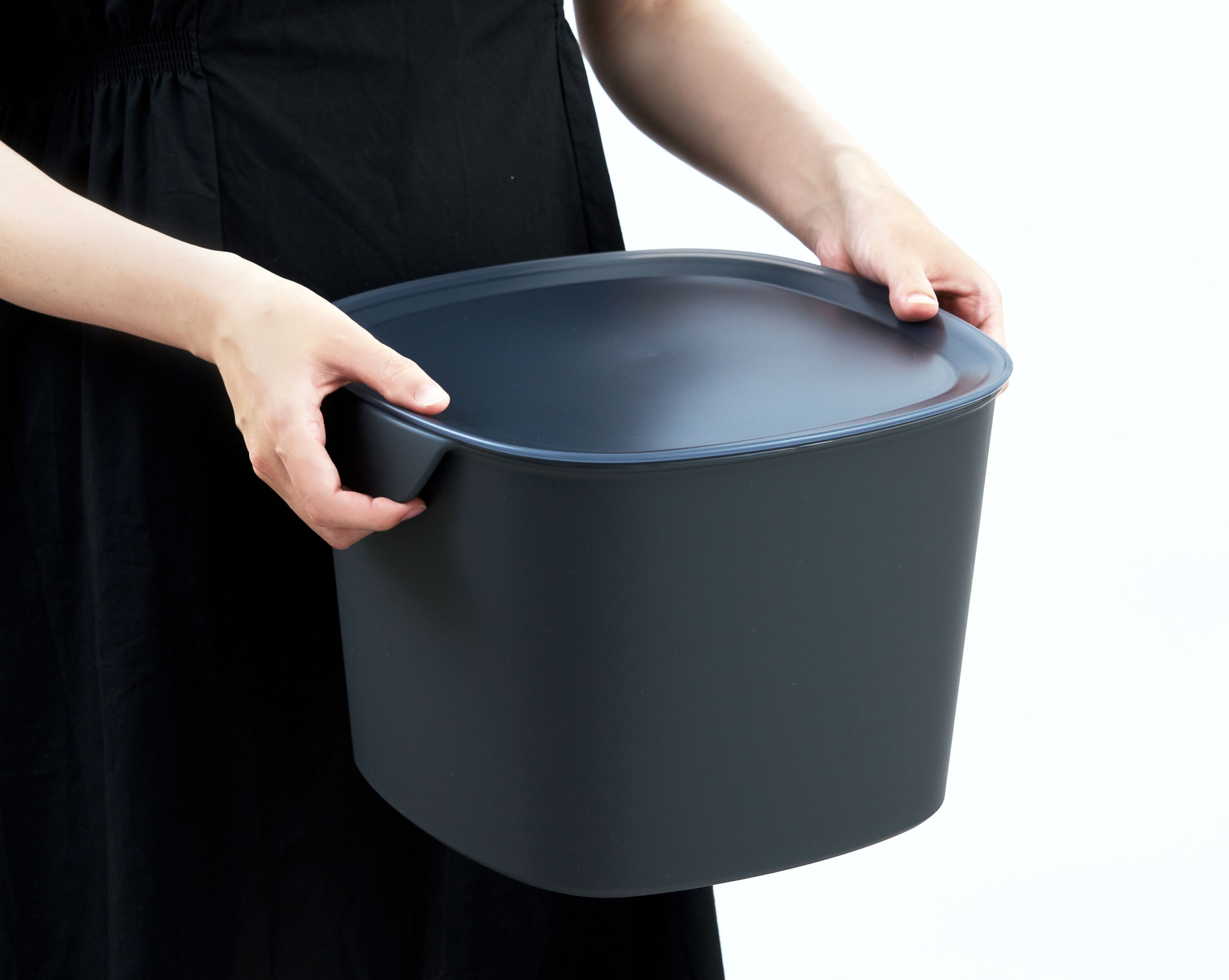 フタ付きなので積み重ねて使えます。3 つまで重ねられ、フタは半透明で中身が少し確認出来ます。