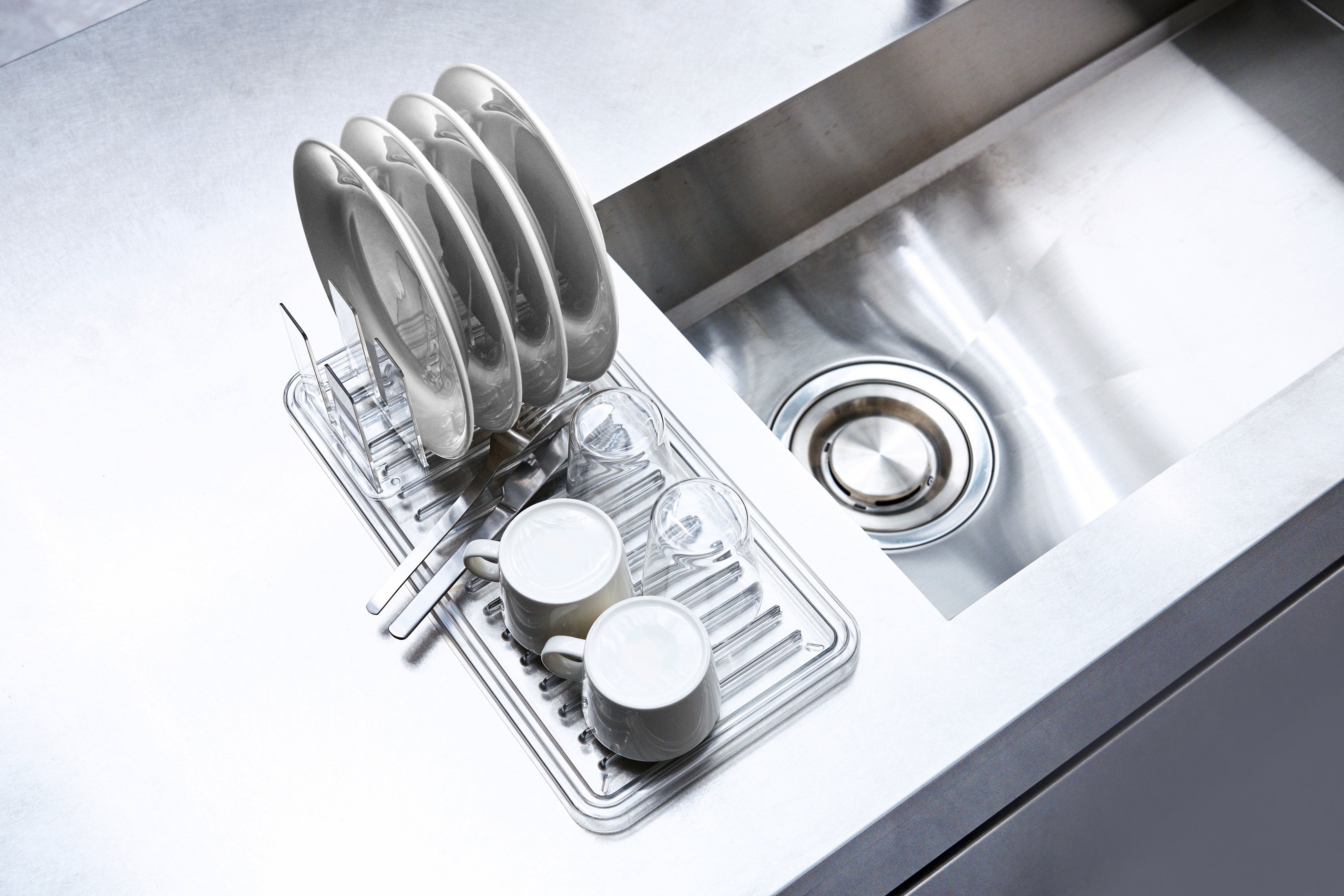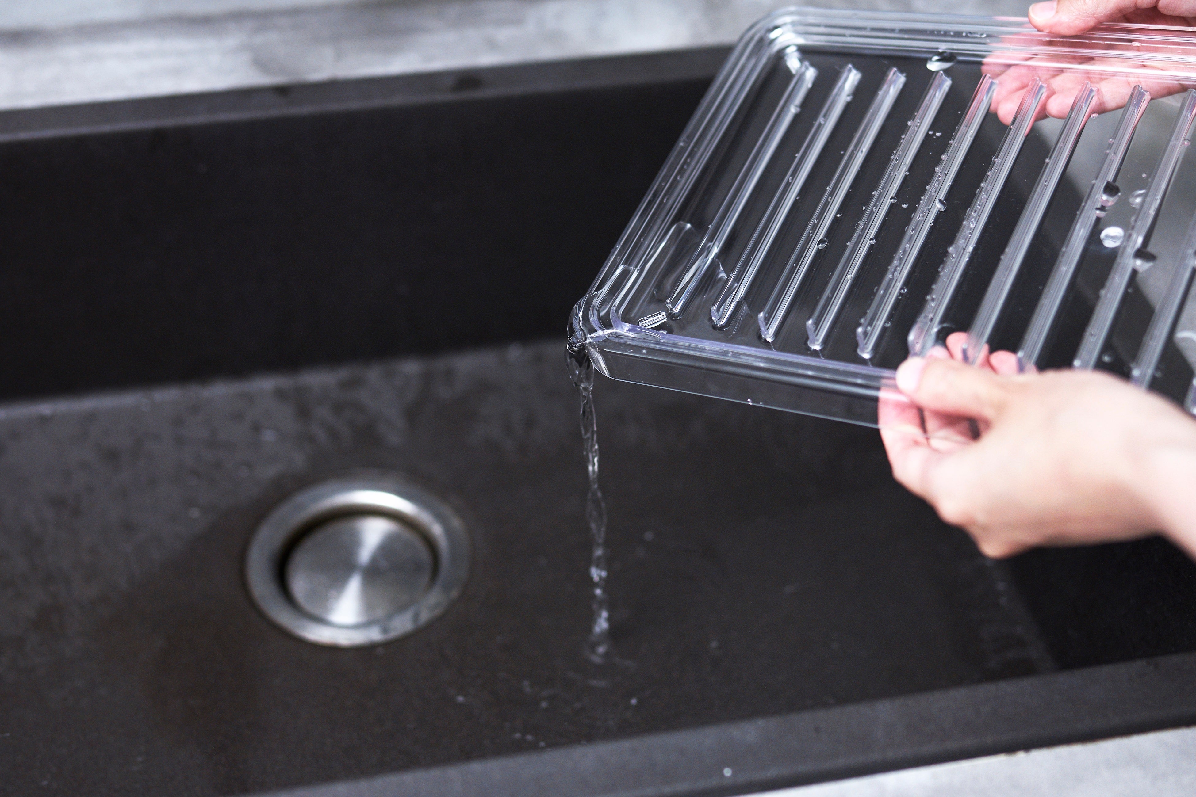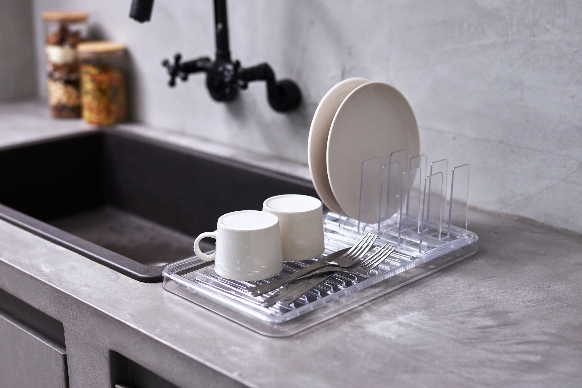 ○クリアで空間にとけこむ水切りトレー「スタンディングドレーナー」