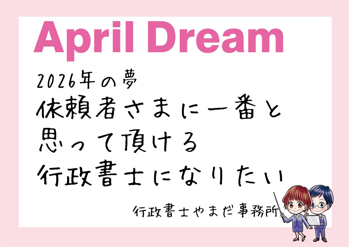 当社は、4月1日に夢を発信する日にしようとするApril Dreamに賛同しています。このプレスリリースは「行政書士やまだ事務所」の夢です。