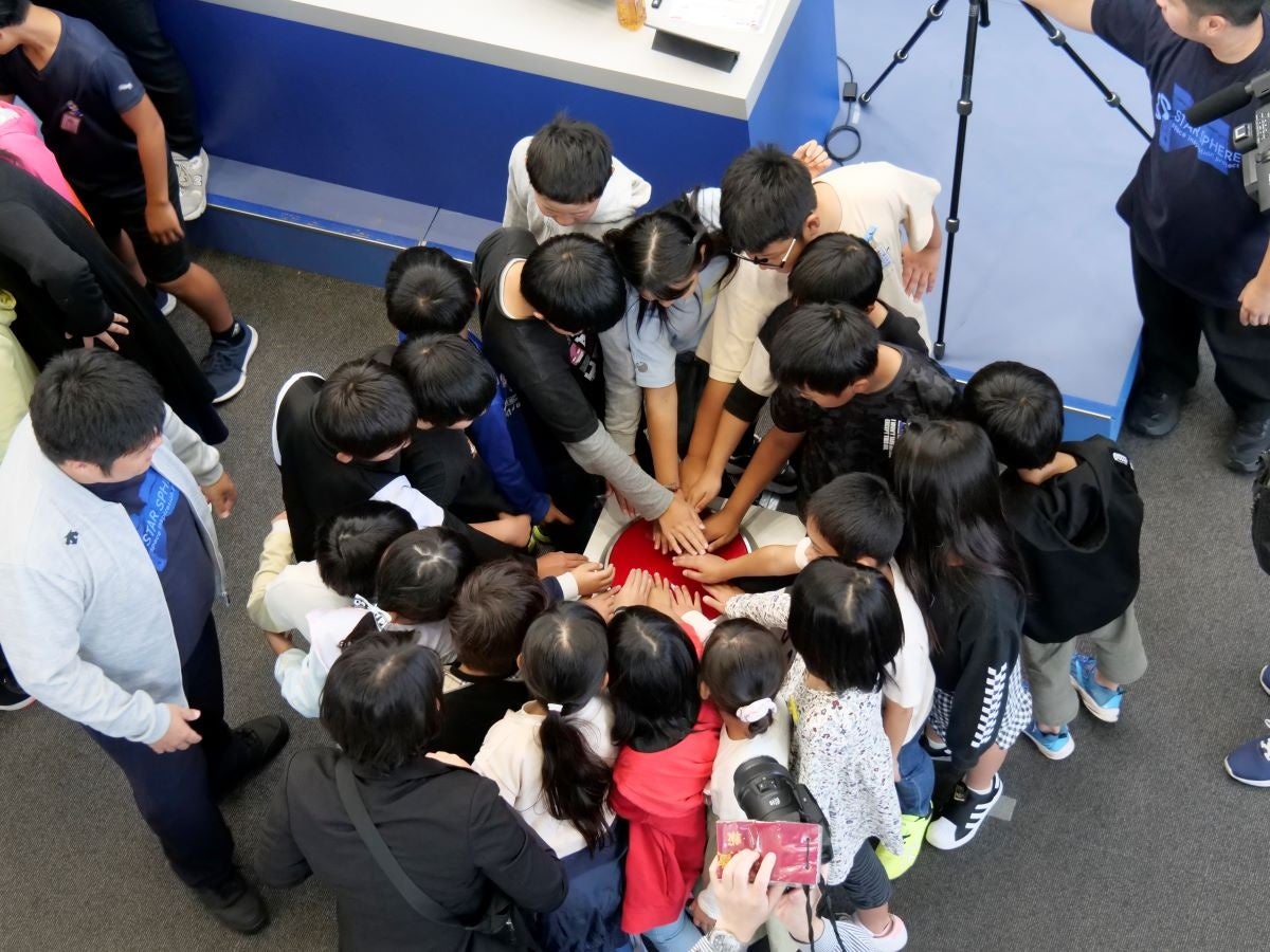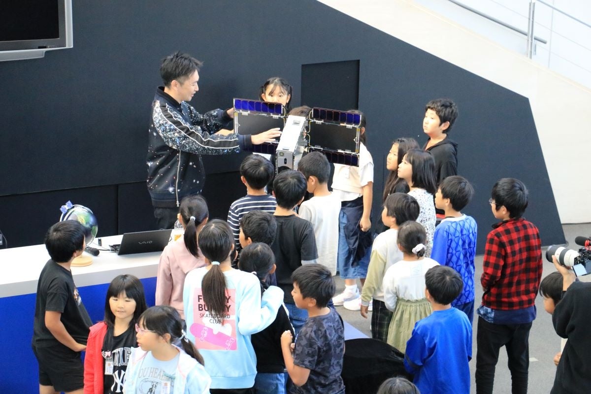 人工衛星『EYE』の実物大模型や、『EYE』の軌道がわかる地球儀などを用いながら宇宙についての学びを深めました。撮影体験では、こどもたちが人工衛星のシミュレーターで操作体験をした後に、佐賀県を含む西日本上空からの撮影アングルを決定。全員で息を合わせて巨大スイッチを押して、予約撮影指示のコマンド送信を実行しました。詳細なイベントレポートは、STAR SPHEREの公式サイトをご確認ください。
