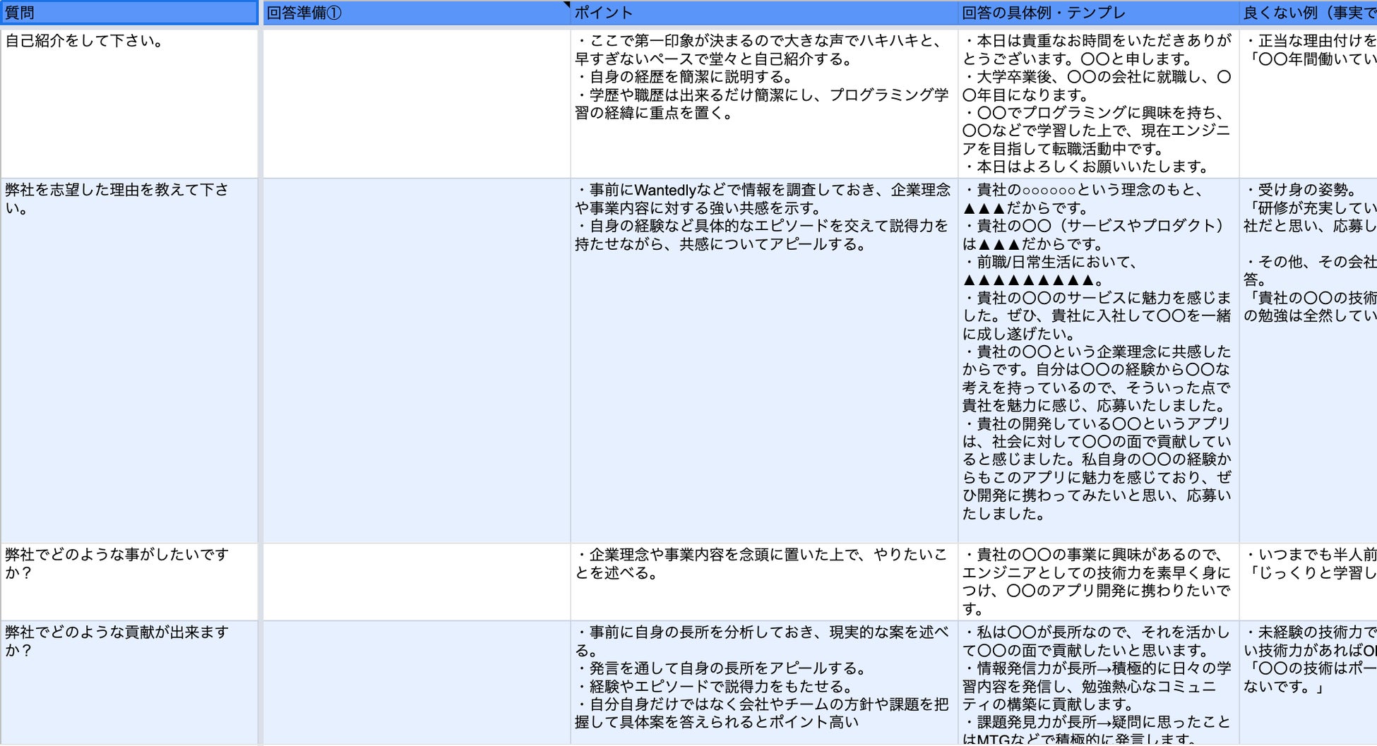 面接でよく聞かれることや模範解答を事前にお伝えし、それらを参考に現役エンジニアがフォローのもと、面接で話す内容を決めていきます。ポジティブな気持ちで面接に臨めるようサポートします。