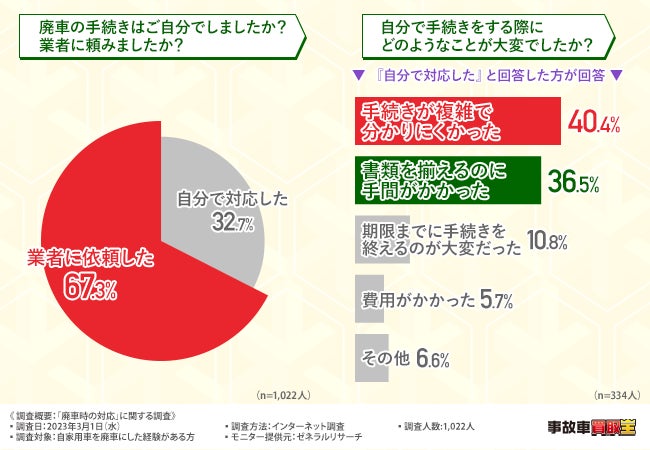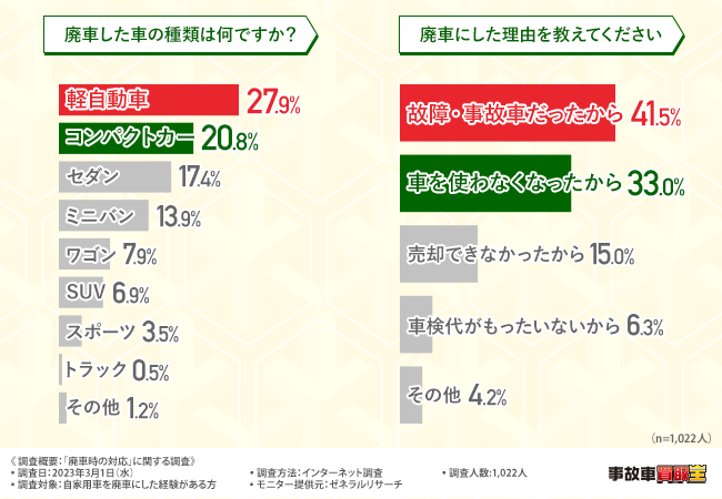 そこで今回、廃車・事故車買取専門『事故車買取王』(https://www.jikosyakaitoriou.com/index.php)は、自家用車を廃車にした経験がある方を対象に、「廃車時の対応」に関する調査を実施しました。