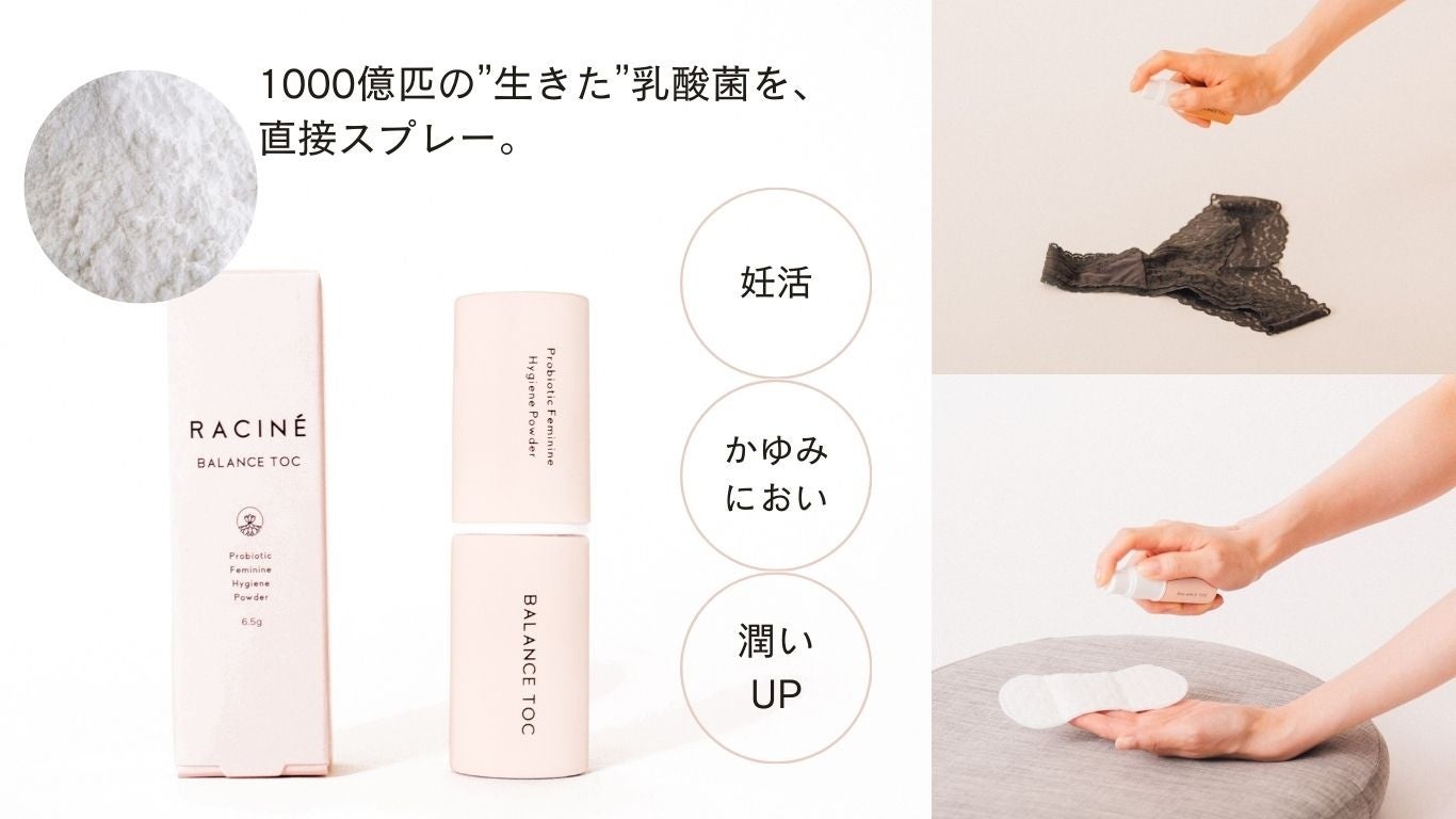【日本初】※”生きた乳酸菌”をパンツにスプレー「raciné balance toc」1000億匹の乳酸菌で、デリケートゾーンのトラブルを解消!