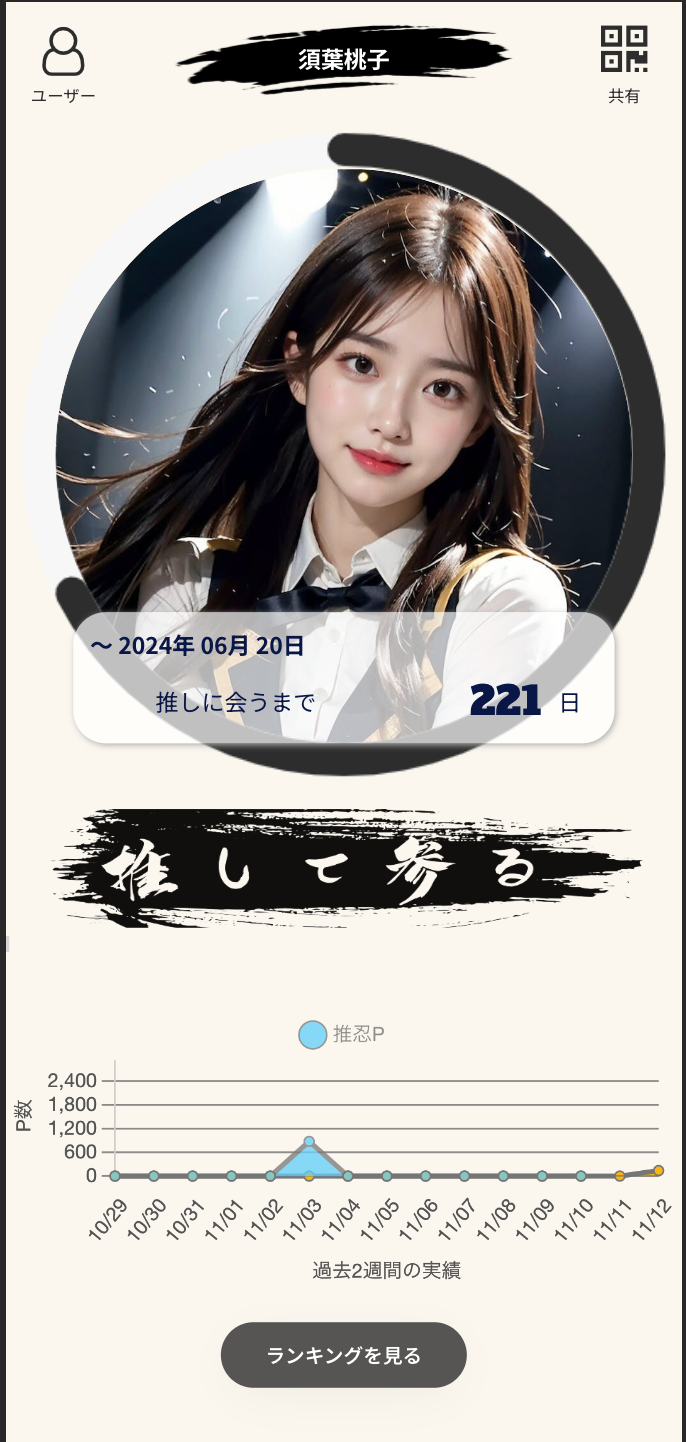 ・アプリの内容 … 推しに会うまでの期間に正拳突きでモチベーションを高めあう「推忍」アプリ