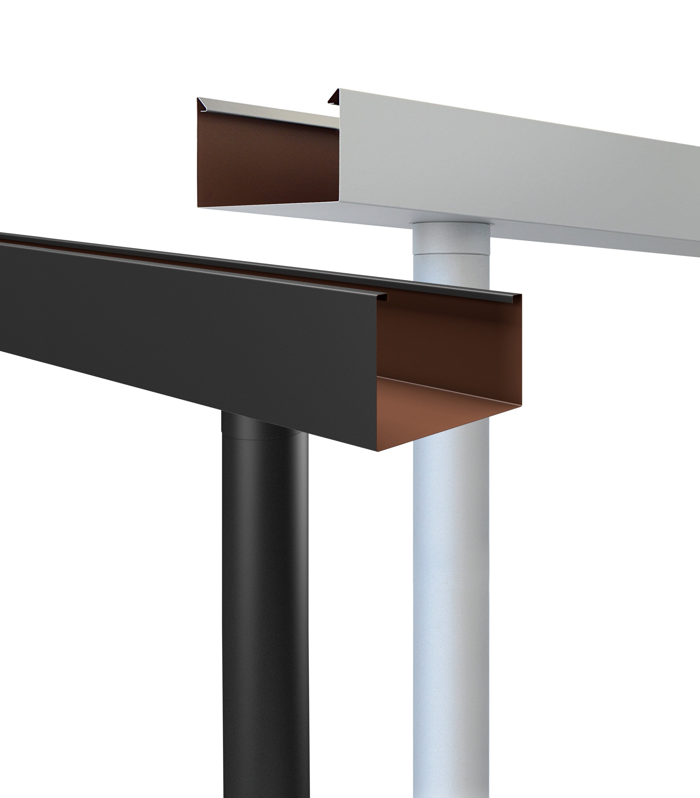 そして今回、業界初となるガルバリウム大型丸たてとい114Φ(呼び径100対応)に加え、新たに89Φ(呼び径75対応)のサイズをラインナップし、ガルバリウム大型雨とい(軒とい・たてとい)シリーズが完結することによって大屋根は無論のこと、陸屋根でも使いやすいラインナップとなります。