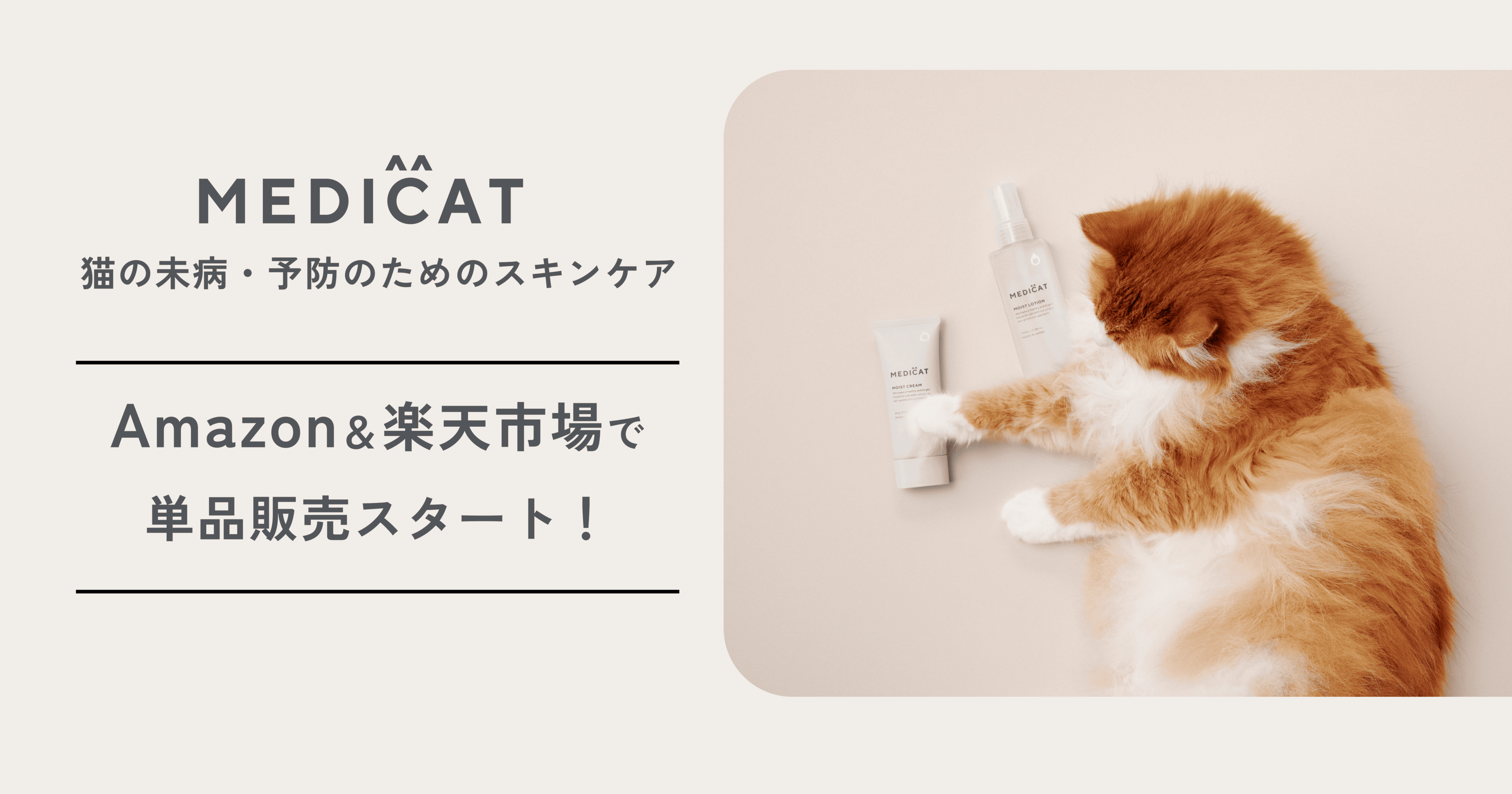 “猫に予防の選択肢を。”というコンセプトのもと、猫の皮膚を徹底的に研究し、皮膚バリアを整える猫のための高品質スキンケア「MEDICAT」は、Amazonと楽天市場への出展を開始しました。