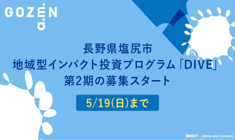 ソーシャルM&A®️ファームGOZEN(ゴゼン)(運営:株式会社drapology / CEO:布田尚大)はこの度、一般財団法人塩尻市振興公社(所在地:長野県塩尻市大門八番町、理事長:塩川昌明)、株式会社Zebras and Company(ヨミ:ゼブラ アンド カンパニー、本社:東京都港区麻布十番、代表取締役:阿座上陽平、田淵良敬、以下Z&C)と共に、社会的インパクト投資の地域実装事業を目的とした『地域型インパクト投資プログラム「DIVE」』の共同運営を開始し、採択された社会起業家にソーシャルM&A®︎のアレンジ・知見の提供を行います。