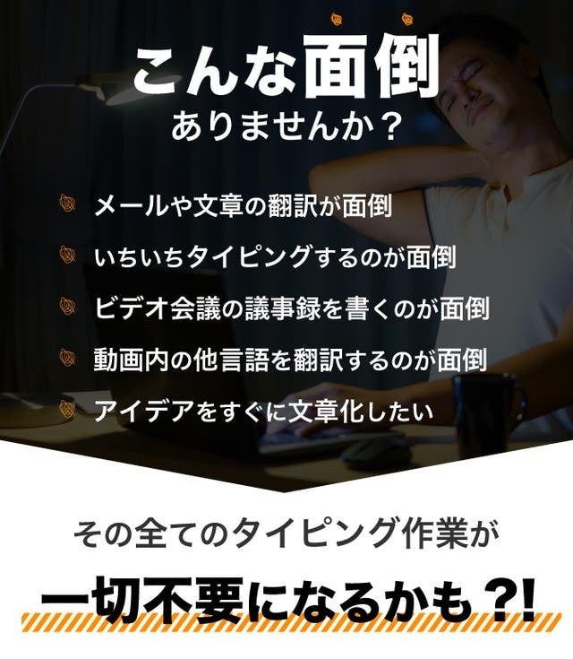 ①音声認識機能搭載でタイピング不要