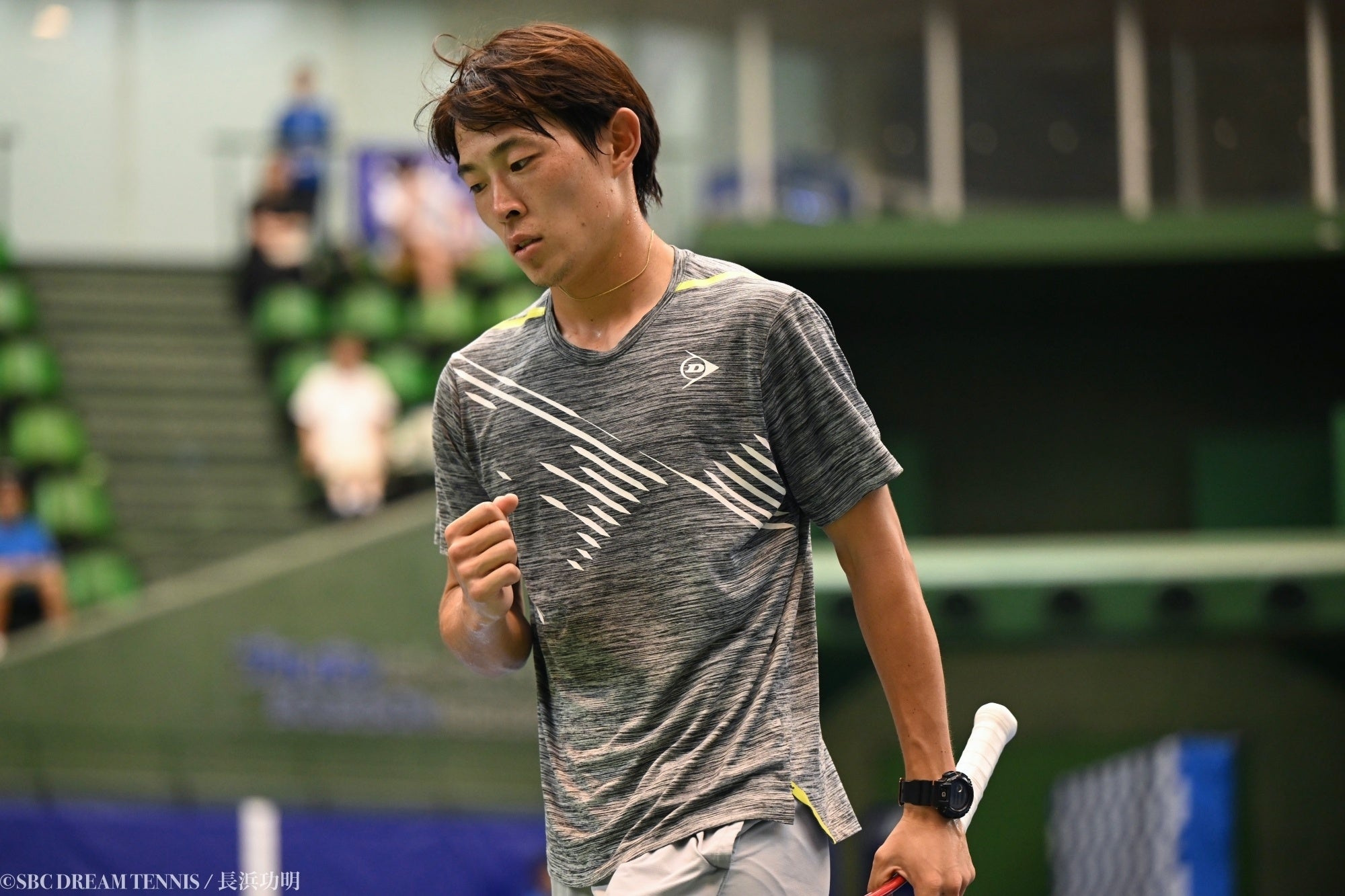 男子決勝は、今大会トップシードの羽澤慎治(JCRファーマ)と、アメリカのカリフォルニア大バークレー校(UCバークレー)で腕を磨き今年プロに転向した菊地裕太(トップラン)の、1999年生まれ同学年対戦になりました。