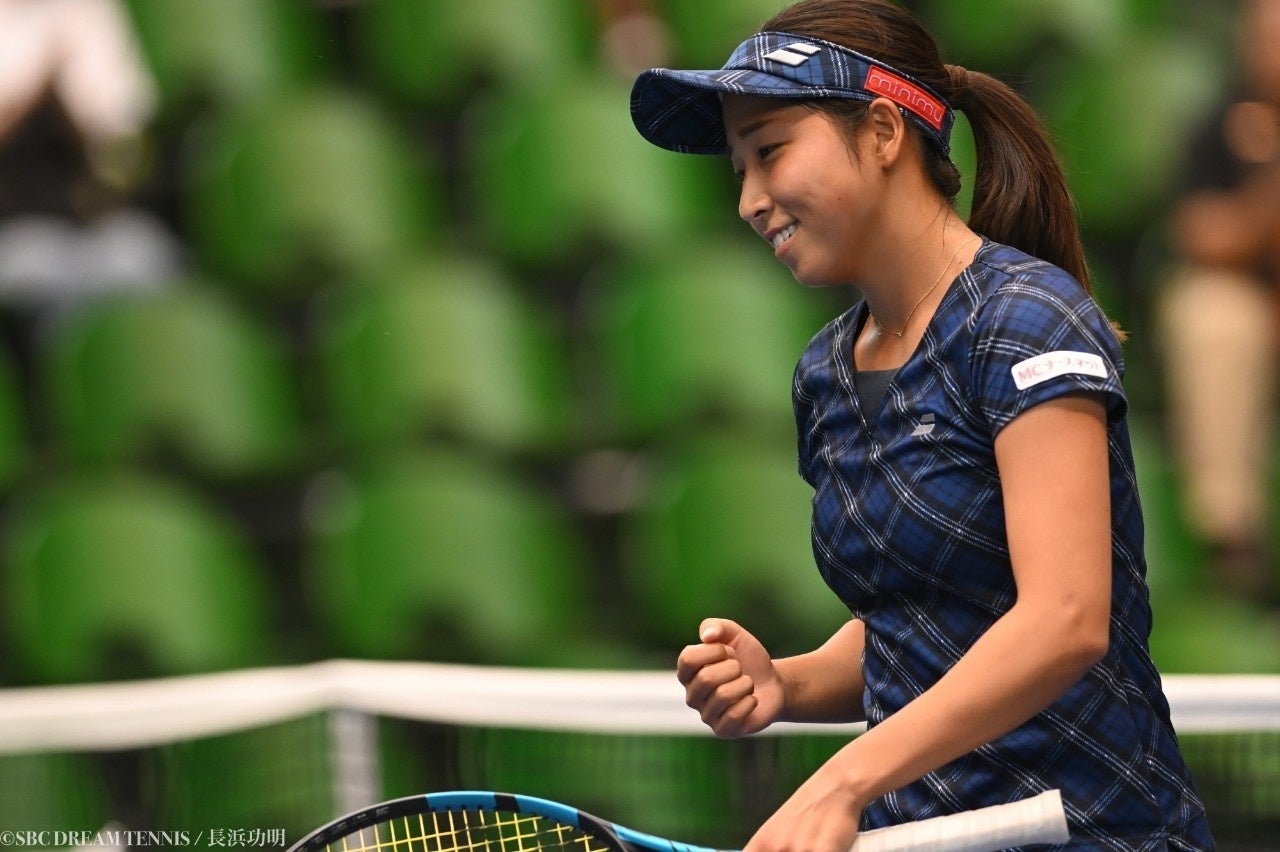 「3年前ぐらいにヒジのケガをして2度手術し、2年間ぐらい試合に出れていませんでした。復帰してダブルスは優勝しましたが、シングルスでは久しぶりに優勝することができてとてもうれしいです。またファイナルラウンドでも優勝して1000万取れるように頑張ります。これからITFでも勝って、WTAやグランドスラムの舞台に戻れるように頑張ります」