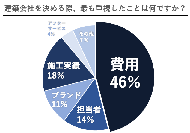 ★約50%の人が建築会社を決めるのに「費用」を最も重視したと回答
