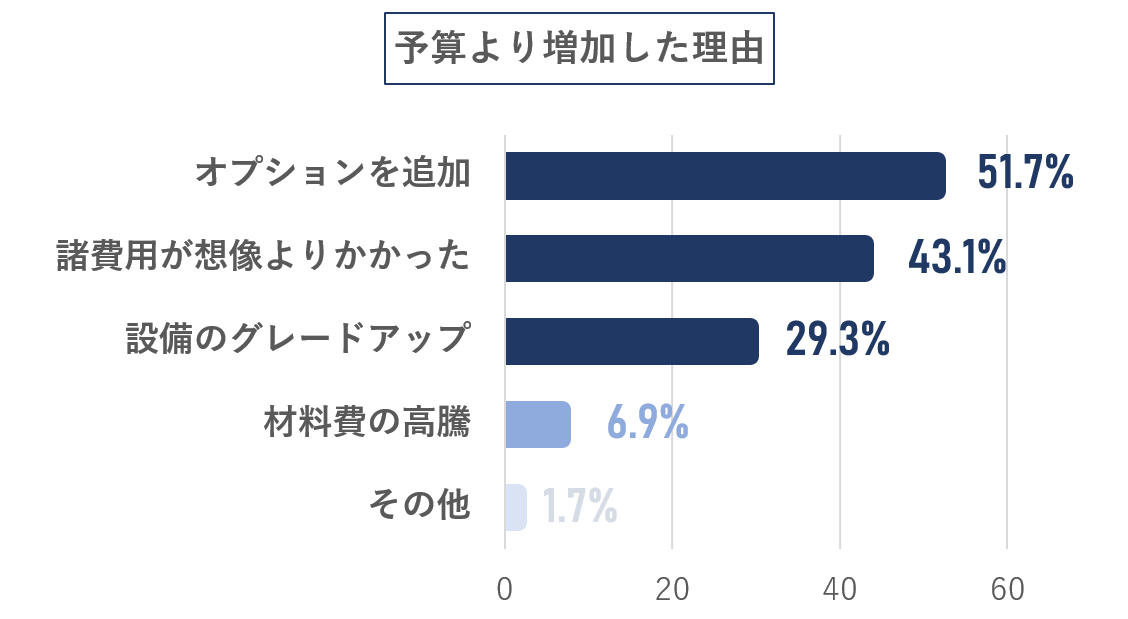 特に多い理由として挙げられたのが、「オプション追加」、その次に「諸費用が想像よりかかった」というもの。