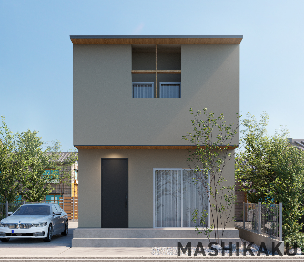 「MASHIKAKU」の家はトレンドの四角い家をベースに、お客様の希望の間取りをプランニングし、外観デザインは、定評のあるサイディングの中からカラーと柄を選択。さらに、オプションを選択して唯一無二の自分だけの注文住宅をつくることができます。プラン、デザイン、部材を一つひとつ決めていく自由設計の注文住宅とは異なり、合理的で高耐震である『真四角』の構造に対して、間取りを決め、外観デザインを選択していくため、打ち合わせの時間を短期間にすることが可能です。