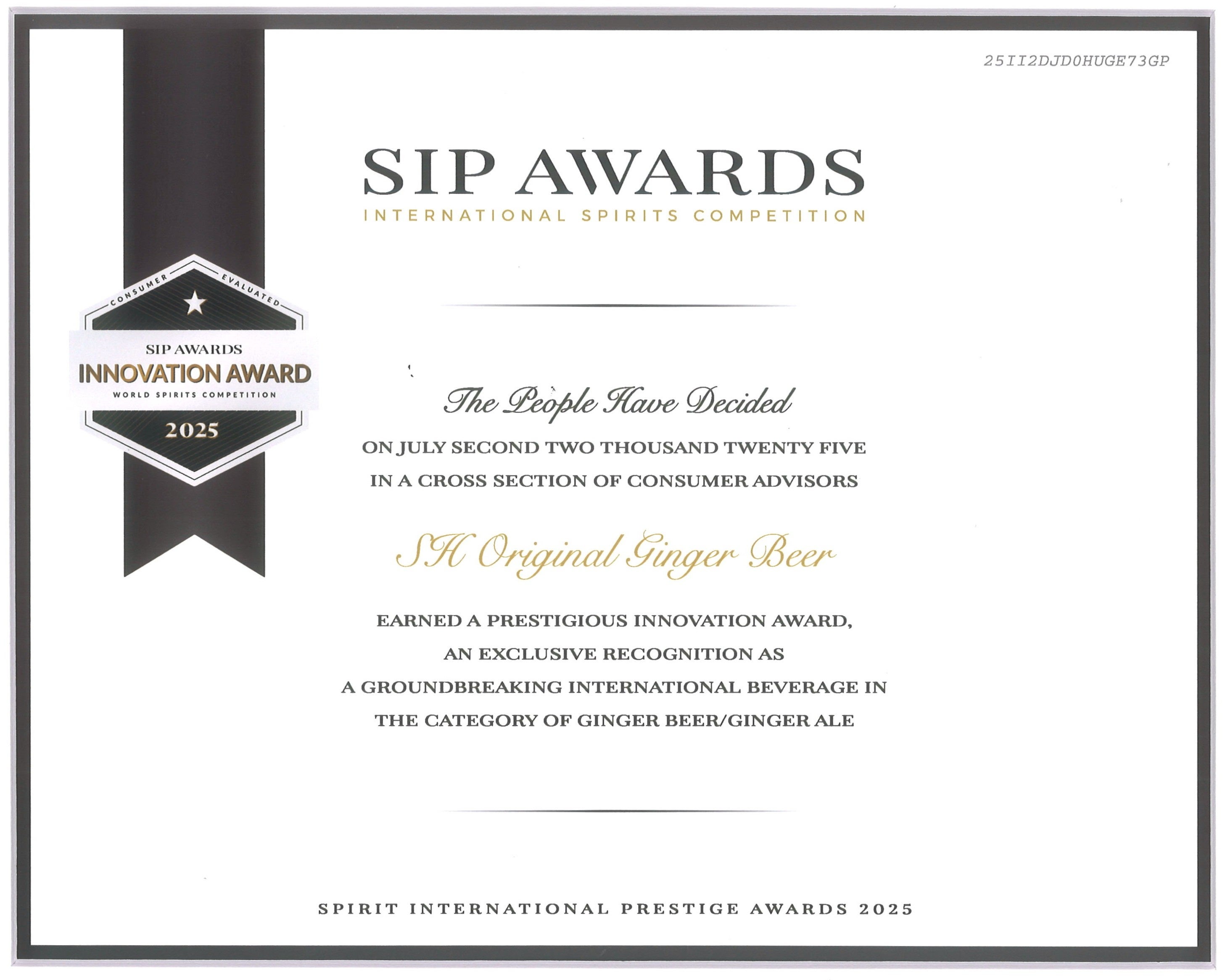 今回の受賞は、SIP Awards 公開の 2009 年から 2025 年までの実績において、ジンジャービア/ジンジャーエール部門で日本企業が「Gold Medal」以上を受賞した初の事例であり、「Innovation Award」も併せて受賞したことから、弊社商品の独自性および品質が高く評価されたことは誠に光栄です。
