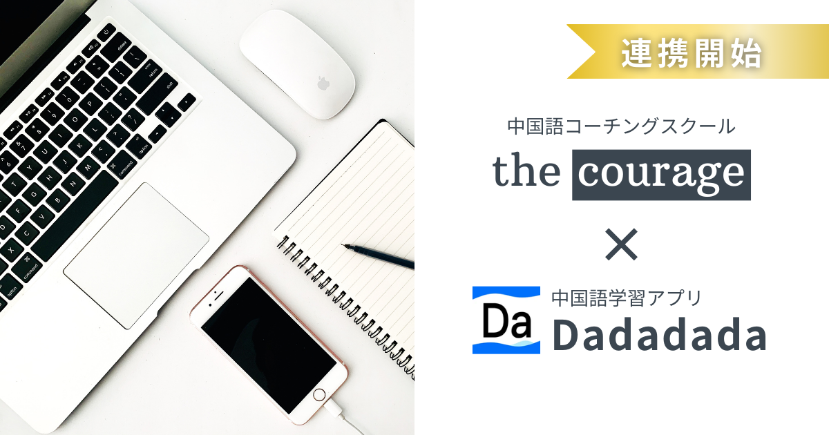 中国語コーチングスクール「the courage」は、中国語学習アプリ「Dadadada」と提携し、中国語例文のピンインを覚えるための初級コンテンツの提供を開始いたします。