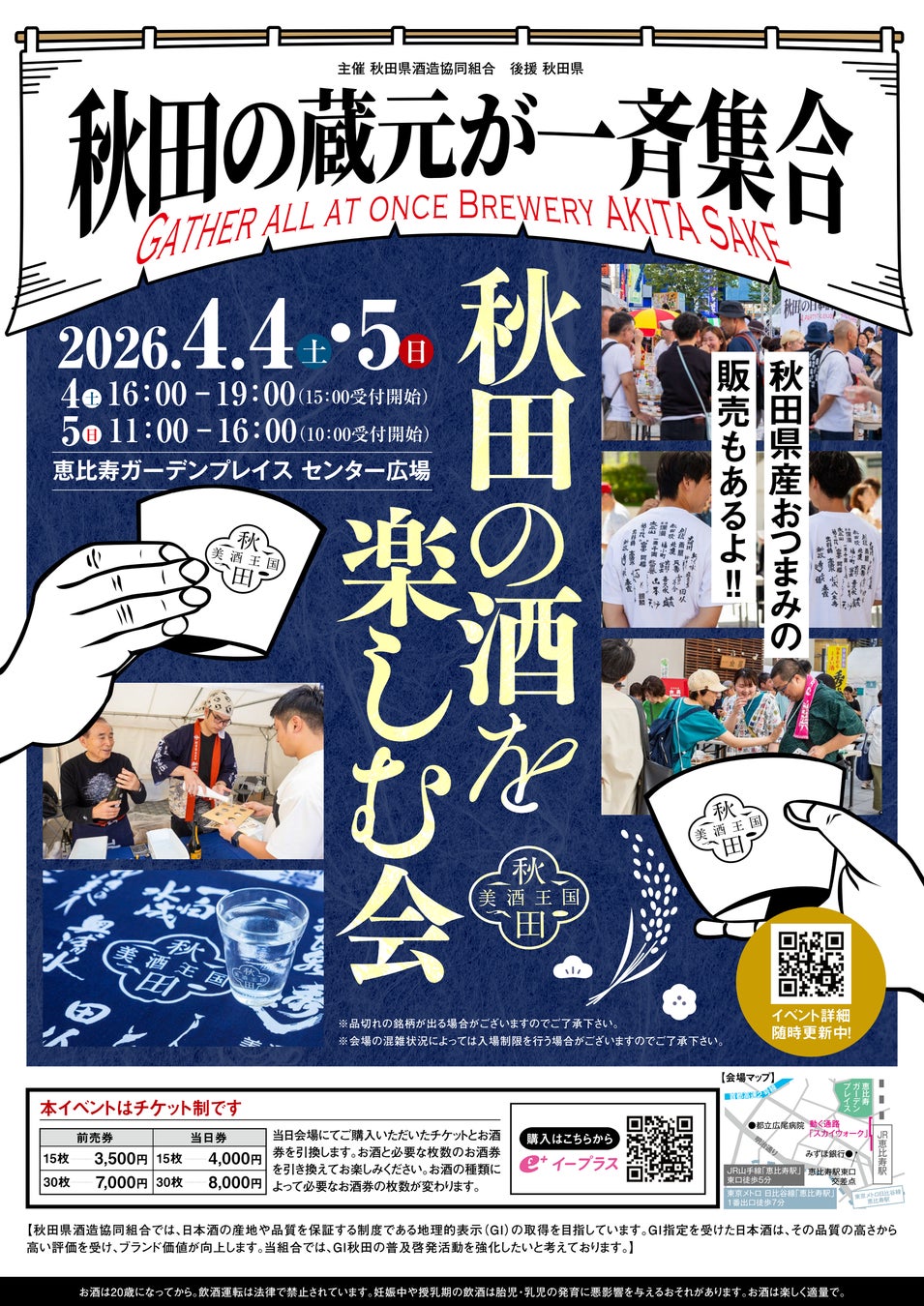 秋田の酒を楽しむ会in東京(秋田県酒造協同組合主催)2026年4月4日(土)、5日(日)に恵比寿ガーデンプレイスセンター広場で開催決定