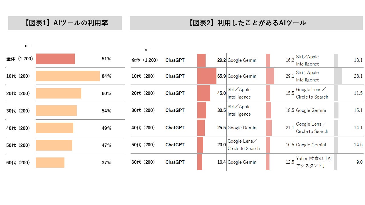 AIツール利用経験は半数以上が経験、ChatGPTが全世代で最多