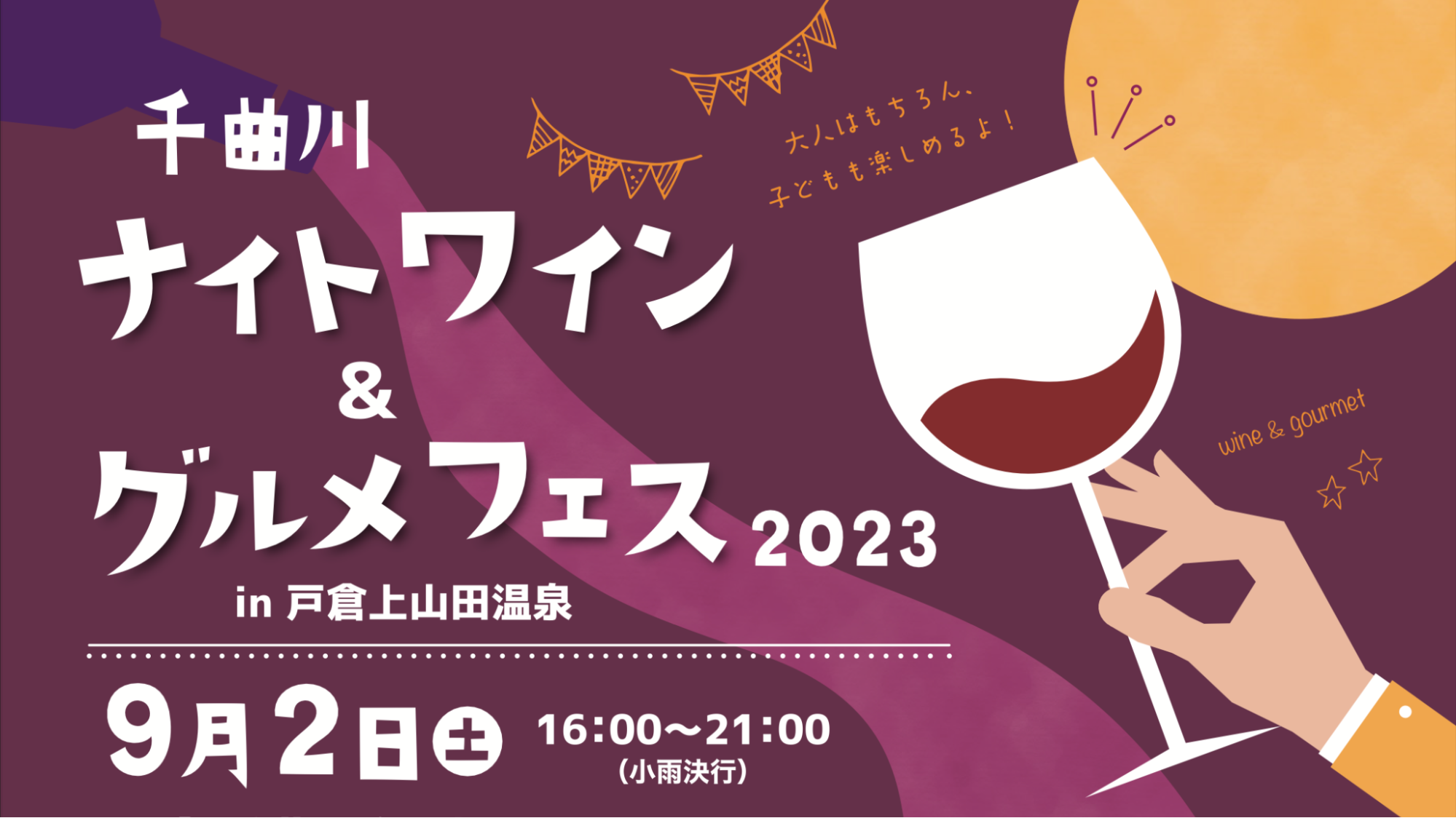 一般社団法人信州千曲観光局は2023年9月2日(土)に「千曲川ナイトワイン&グルメフェス2023」を開催します。長野県に籍を置く多くのワイナリーや、ワインのお供に楽しめるベーカリーなど約50店舗が出店する、千曲市発のワイン&グルメイベントです。東御市のワインフェスタと同時開催し、戸倉駅から姨捨駅への特別運行バスも運行することで周遊促進と千曲川ワインバレー構想の更なる発展に貢献します。