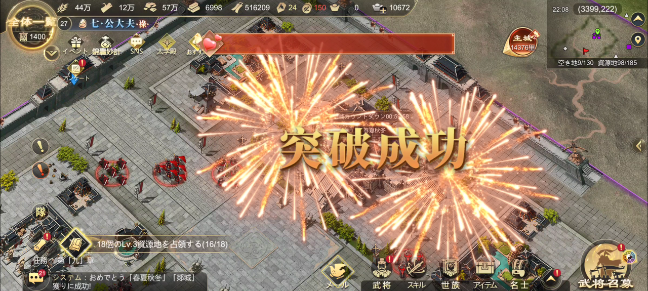 奥平信昌:土地lv7ですね。 主城のみの3部隊で攻略する必要があり、取得すれば分城が建設できる!という目標があったため必死でした。