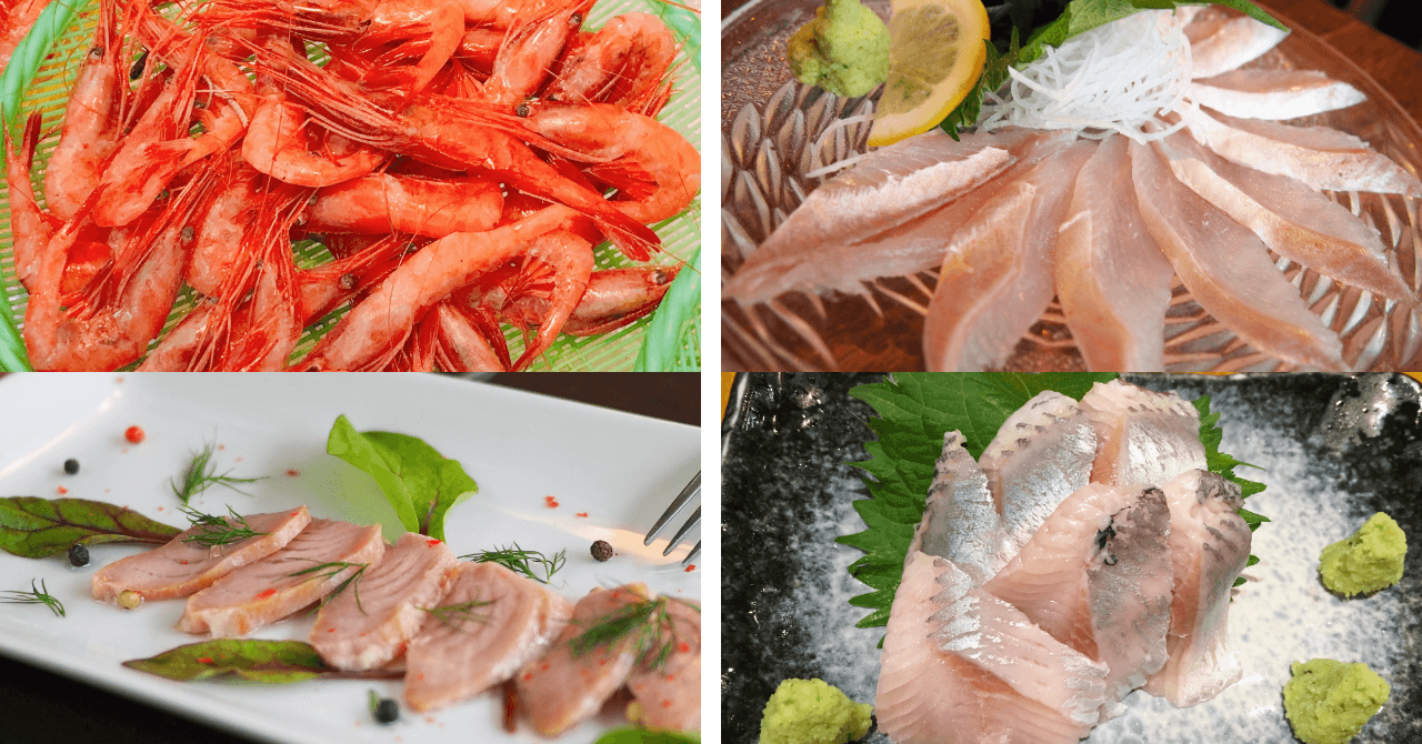 販売商品は、「まぐろサラミ」「まぐろハム」「生甘えび皮むき」「トロほっけ刺身」「幻の日本酒と塩だけで茹でたタコ」「天然平目薄造り」「生しめ鯖」の7種類(すべて紫外線殺菌済)。値段は1,000~1,500円で販売しています。 コンパクトサイズなので、お土産にも最適です。
