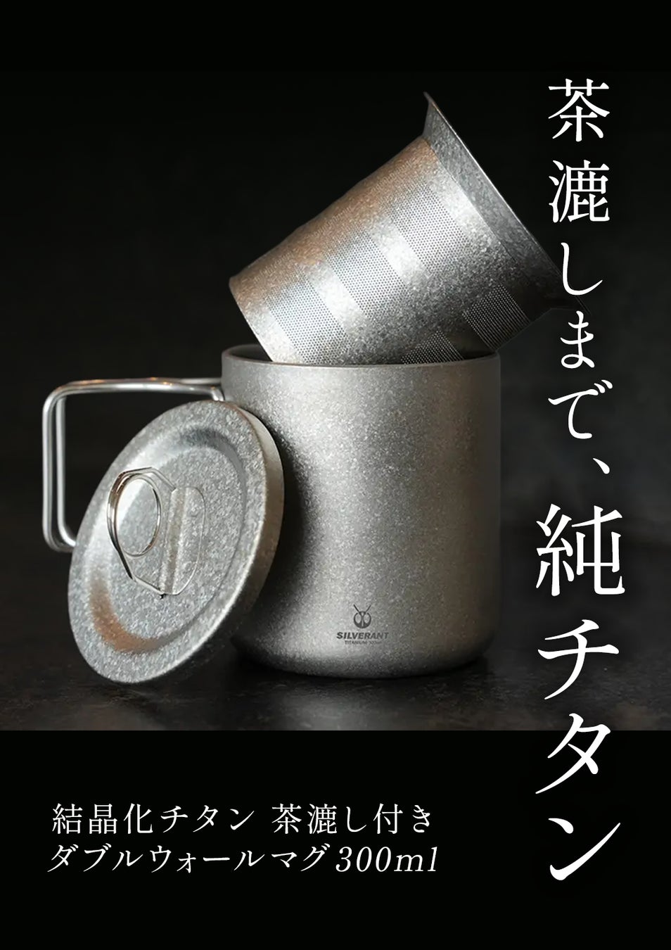 クラウドファンディングで累計2,400万円を突破したチタンブランド 「SilverAnt(シルバーアント)」 から、新商品 『結晶化チタン 茶漉し付き ダブルウォールマグ 300ml』が販売開始。使用素材は純度99.7%以上のチタンのみ。繊細なチタン製の茶漉しが茶葉やコーヒーの旨みを引き出し、“本格的な一杯”をどこでも手軽にお愉しみいただけます。