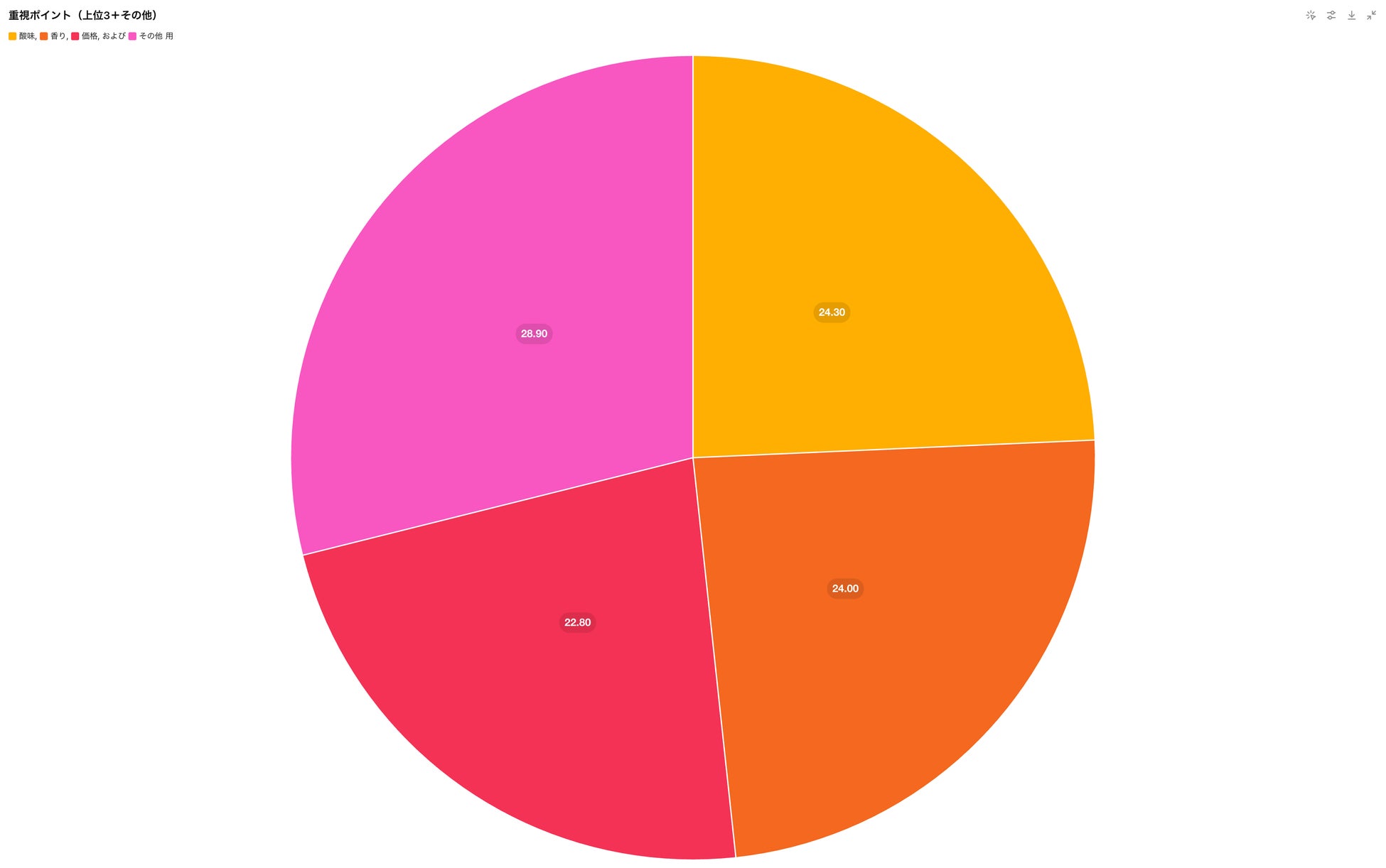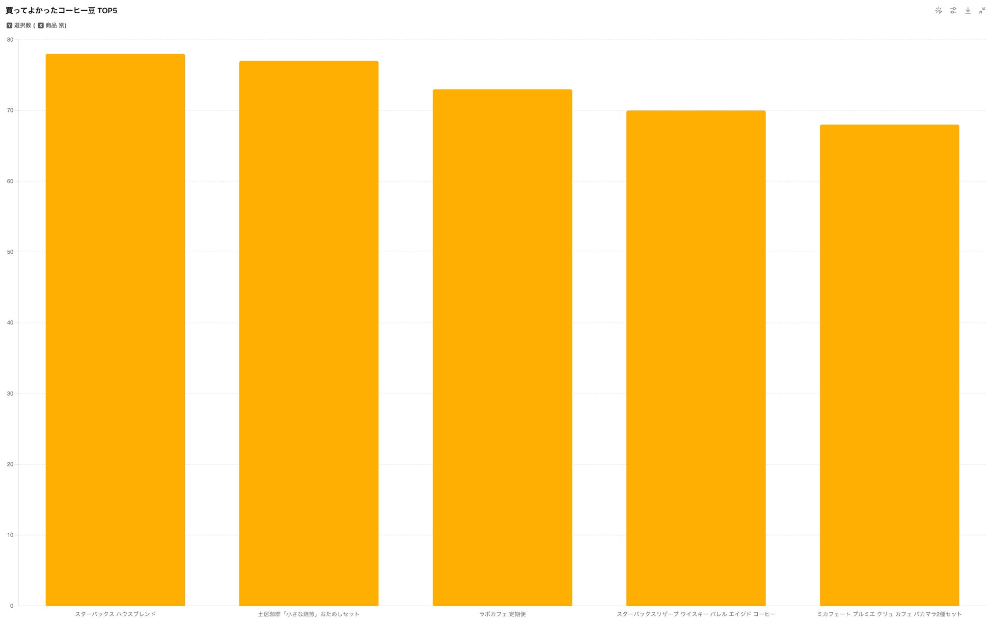 主な設問:重視ポイント / 買ってよかった豆 / 良かった点 / 飲用頻度 / 属性