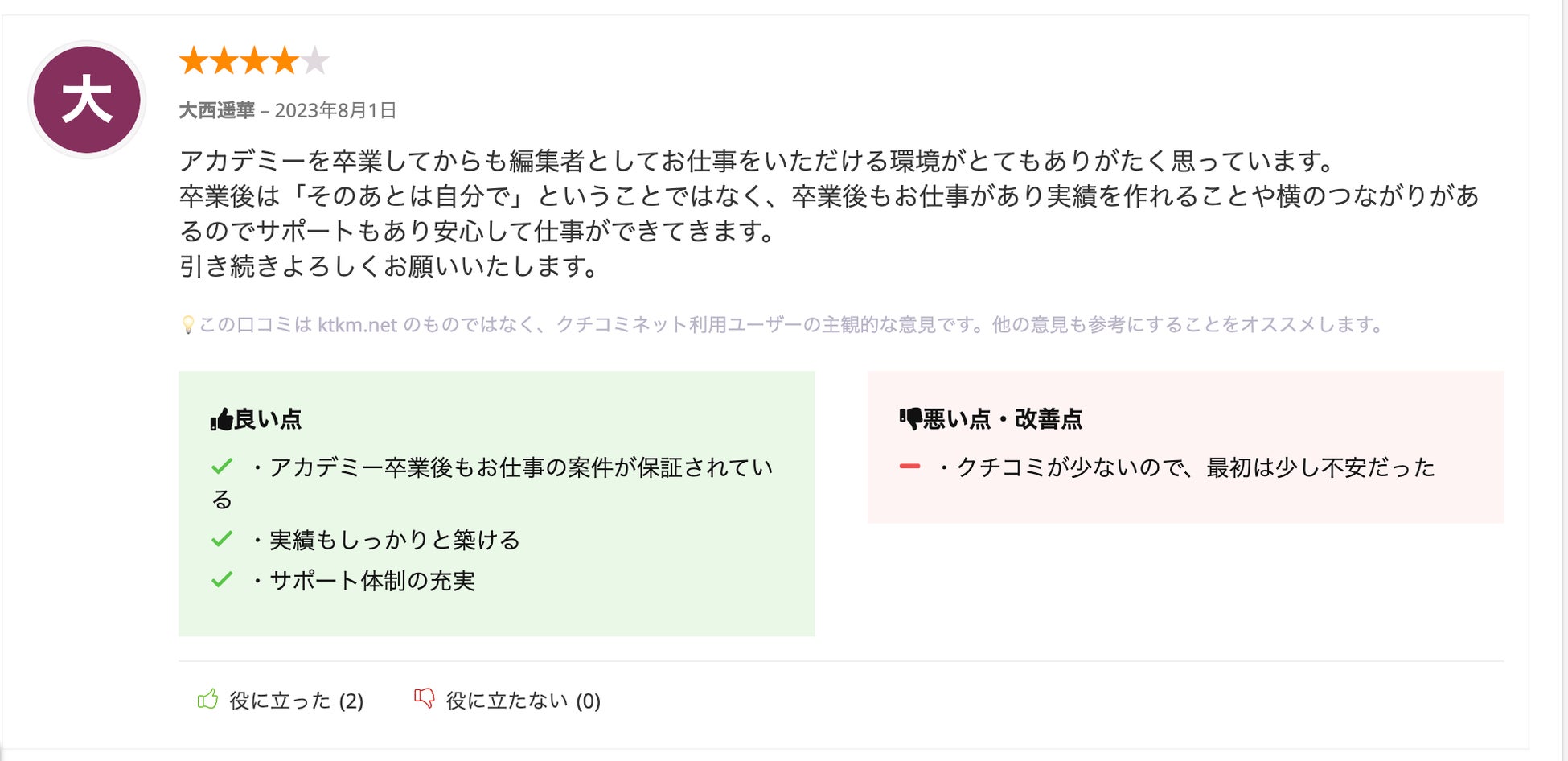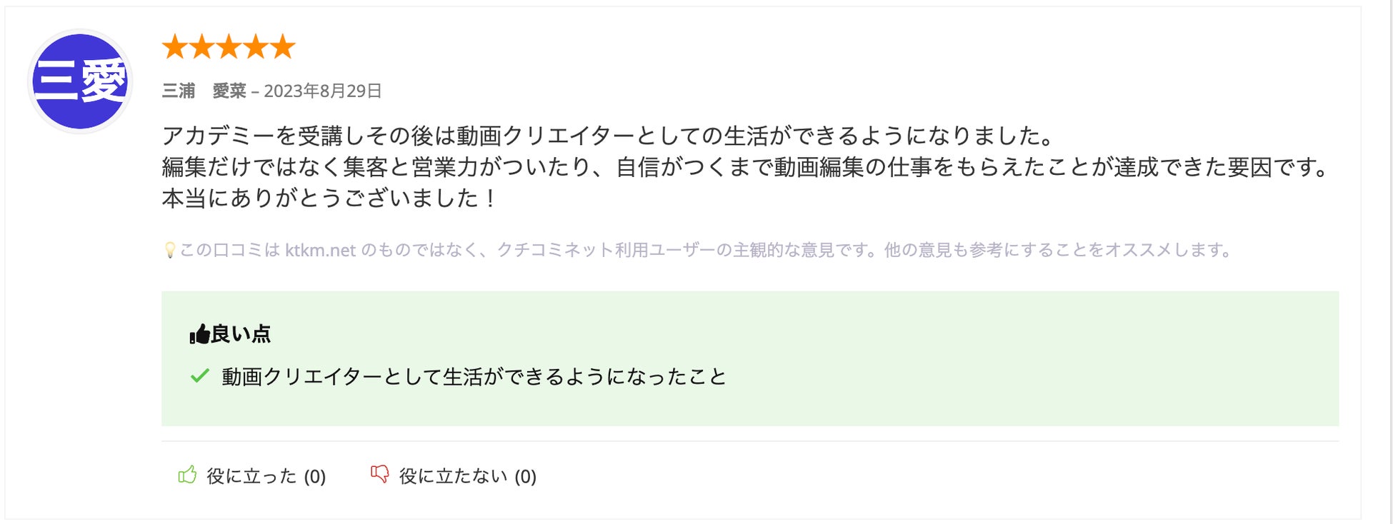 ビデオチューブアカデミー生の口コミを一部掲載します。