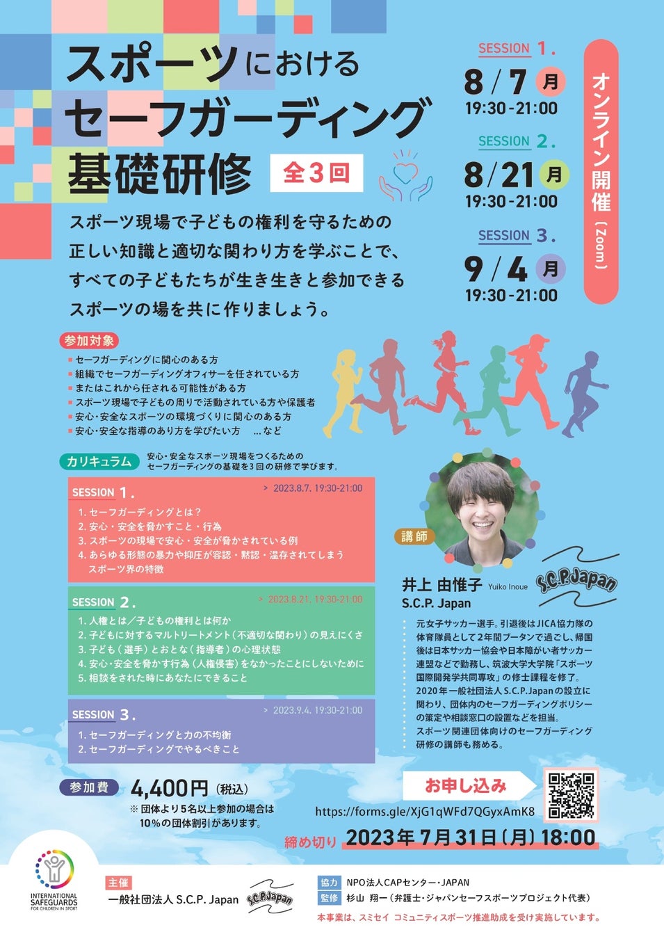 S.C.P. Japanがこの夏「スポーツにおけるセーフガーディング基礎研修」全三回を開催。安心・安全なスポーツ現場をつくるためのセーフガーディングの基礎を学びます。