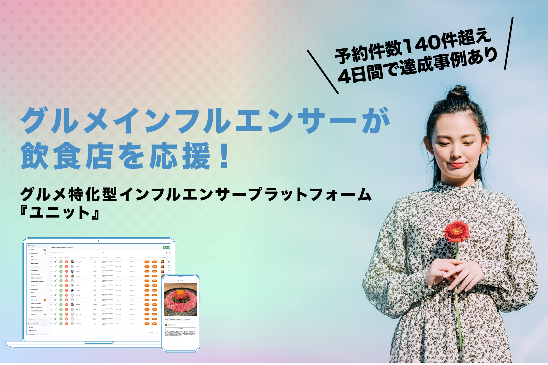 “グルメ投稿に信頼のおけるインフルエンサー”と、“応援を必要とする飲食店”とを繋ぐプラットフォーム『ユニット』