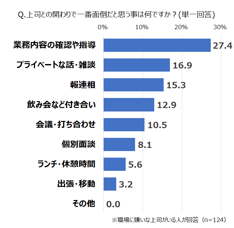 Q4.上司との関わりで一番面倒だと思う事は何ですか?(単一回答)