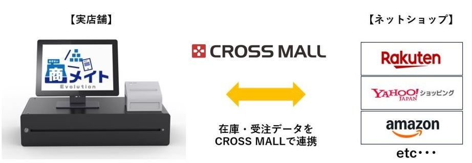 POS一体型店舗運営システム「商メイト」、ネットショップ一元管理システム「CROSS MALL」との連携を開始