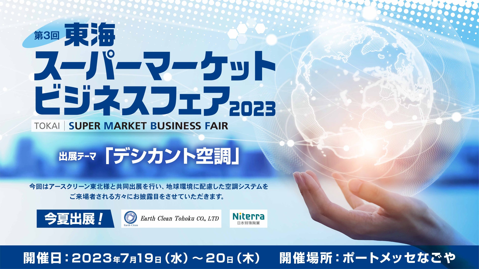 出展のお知らせ「東海スーパーマーケットビジネスフェア2023」(2023 年 7 月 19 日~7 月 20 日)- カーボンニュートラル実現につながる潜熱・顕熱分離空調機器の普及を目指す –