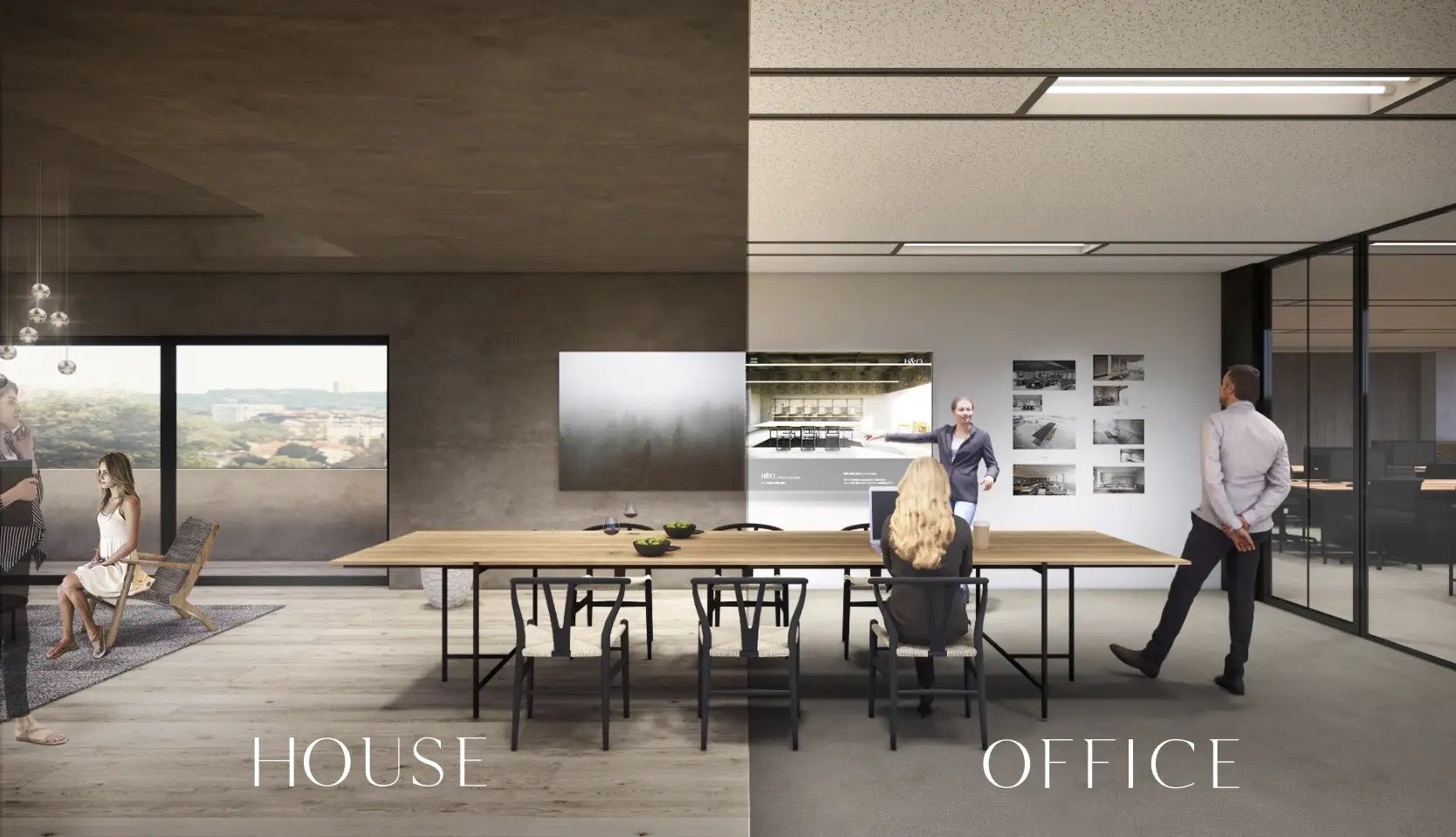 リビング / オフィス ミーティングルームでの「WOOD」使用イメージ