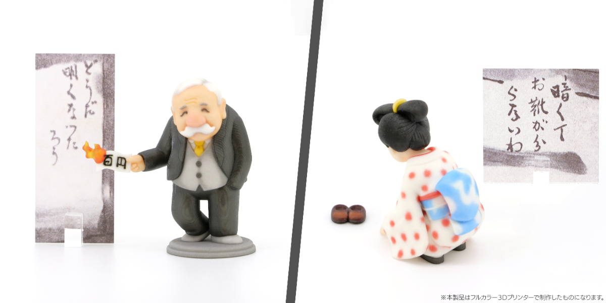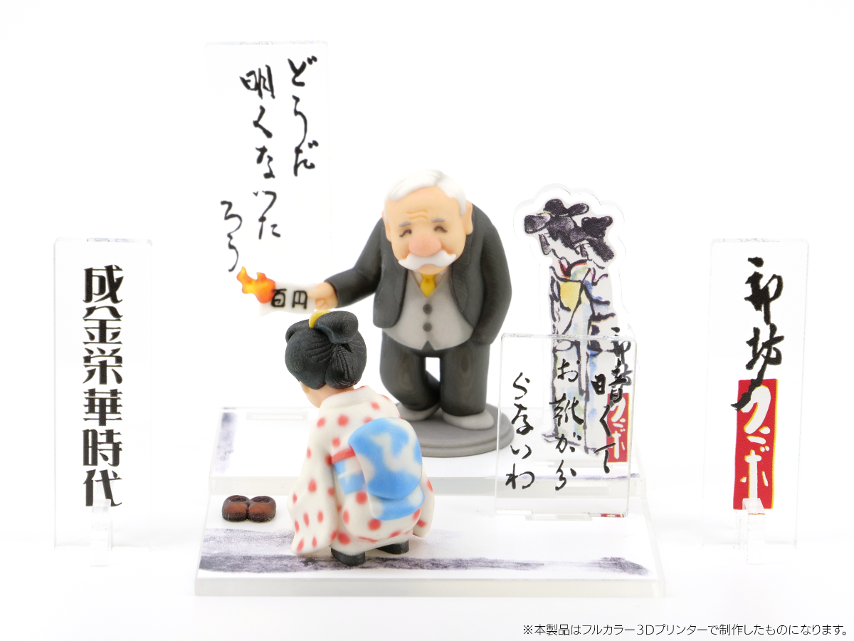 「成金おじさん」シリーズは、香川県灸まん美術館が徹底監修した和田邦坊『成金栄華時代』の初めての公式フィギュアです。昨年、和田邦坊没後30年の節目に、最新のフルカラー3Dプリンターで制作しました。