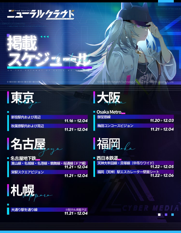 11月16日から全国の5つの都市(札幌、東京、大阪、名古屋、福岡)でニューラルクラウドの屋外広告がスタート。これに合わせてキャンペーンを開催します。