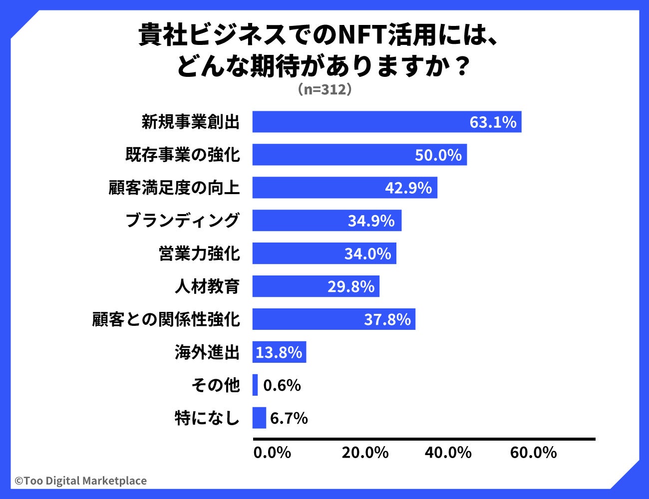 - 自社ビジネスでのNFT活用への期待は63.1%が「新規事業創出」と回答