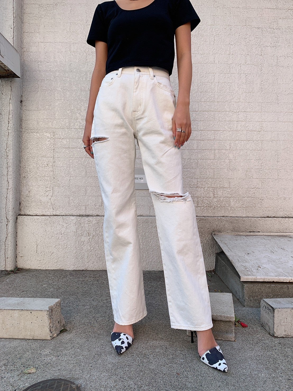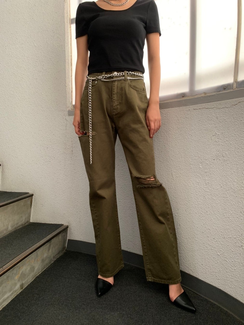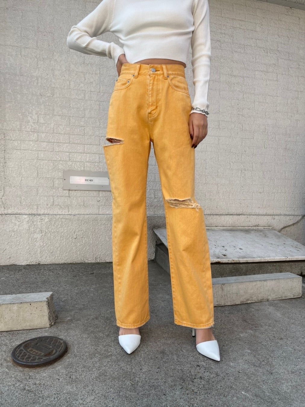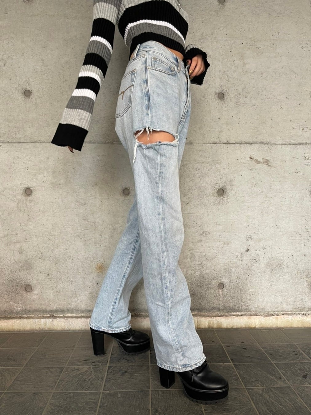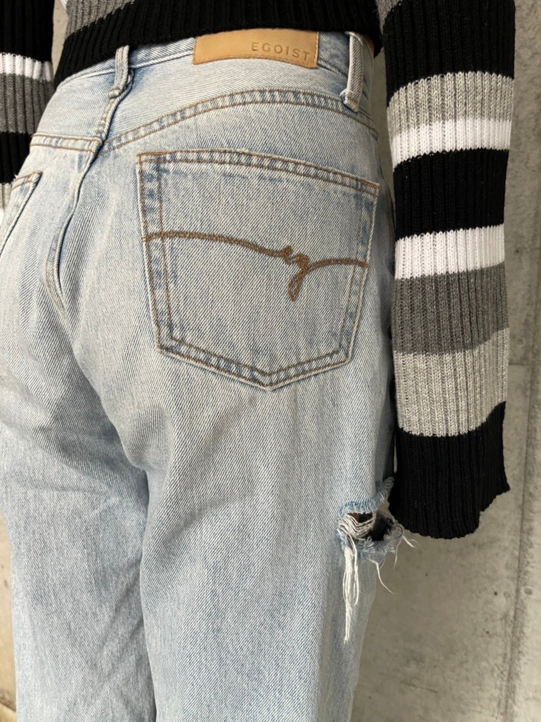 カジュアルアイテムでも、太腿に施された大胆なダメージでセクシーさも忘れないというEGOISTならではの至極の1本。