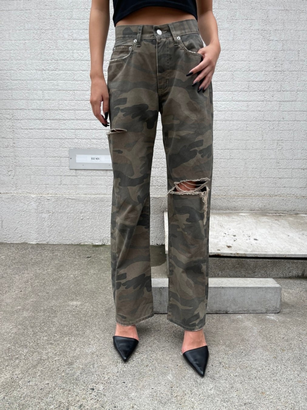 ハイウエストながら、あえて腰回りをゆったりとさせ落として履く事でこなれ感たっぷり。